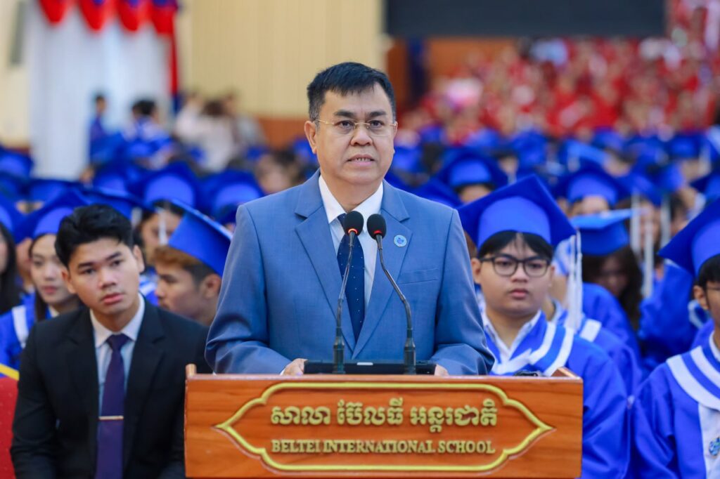 ឯកឧត្តមបណ្ឌិត លី ឆេង បានកោតសរសើរចំពោះក្មួយៗ ដែលបានខិតខំយកចិត្តទុកដាក់ប្រឹងប្រែង សិក្សារៀនសូត្ររយៈពេល ១២ឆ្នាំកន្លងមកនេះ ជាពិសេសគោរពបទបញ្ជាផ្ទៃក្នុង មានវិន័យ សីលធម៌ និងគុណធម៌ល្អ មិនបង្កផលលំបាកដល់គ្រួសារ និងសង្គមជាតិ រហូតទទួលបានជោគជ័យប្រឡងជាប់សញ្ញាបត្រមធ្យមសិក្សាទុតិយភូមិ (បាក់ឌុប) នាពេលនេះ។ ជាមួយនឹងជោគជ័យរបស់ក្មួយៗ ឯកឧត្តមបណ្ឌិត ក៏បានថ្លែងអំណរគុណចំពោះមាតាបិតា និងអាណាព្យាបាលសិស្សទាំងអស់ដែលបានផ្តល់ឱកាស និងជំរុញកូនៗឱ្យសិក្សាបន្ថែមនៅផ្ទះ ធ្វើកិច្ចការផ្ទះ និងគោរព វិន័យសាលា ព្រមទាំងសហការយ៉ាងជិតស្និតជាមួយគណៈគ្រប់គ្រងនៅតាមបណ្តាសាខានៃសាលា ប៊ែលធី អន្តរជាតិ។ ឯកឧត្តមបណ្ឌិត ក៏បានផ្តាំផ្ញើដល់ក្មួយៗទាំងអស់ ឱ្យខិតខំយកចិត្តទុកដាក់បន្តការសិក្សារៀនសូត្របន្ថែមទៀតនៅថ្នាក់ ឧត្តមសិក្សា ដោយធ្វើការជ្រើសរើសនូវមុខវិជ្ជាណាដែលខ្លួនស្រឡាញ់ពេញចិត្ត សម្រាប់ធ្វើជាអាជីពខ្លួនឯងទៅថ្ងៃ អនាគត និងប្រកួតប្រជែងដណ្តើមទីផ្សារការងារជាមួយបណ្តាយុវជនទាំងអស់ ទាំងក្នុងតំបន់អាស៊ាននិងពិភពលោក ដើម្បីដើរឱ្យទាន់នូវការរីកចម្រើនផ្នែកបច្ចេកវិទ្យាសម័យបដិវត្តឧស្សាហកម្ម ៤.០។ ជាពិសេស ត្រូវមានមនសិការជាតិ សាមគ្គីភាពជាតិ ឯកភាពជាតិជាធ្លុងមួយយ៉ាងរឹងមាំ ហើយត្រូវជឿជាក់ និងគាំទ្រលើការដឹកនាំដ៏ត្រឹមត្រូវ របស់ថ្នាក់ដឹកនាំ ដែលមាន សម្តេចអគ្គមហាសេនាបតីតេជោ ហ៊ុន សែន ជាប្រធានព្រឹទ្ធសភា និង សម្តេចមហាបវរ- ធិបតី ហ៊ុន ម៉ាណែត ជានាយករដ្ឋមន្ត្រី។