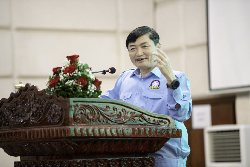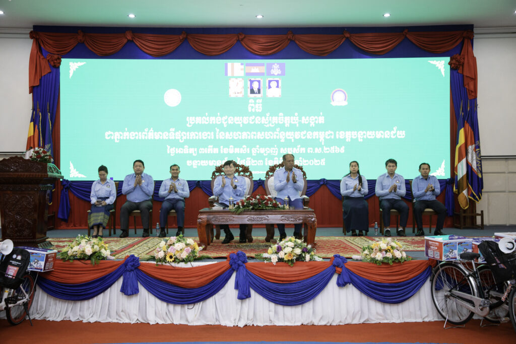 ប្រសាសន៍ ឯកឧត្តម ហេង សួរ សមាជិកគណៈអចិន្រ្តៃយ៍គណៈកម្មាធិការកណ្តាល និងជាប្រធានក្រុមការងារសហភាពសហព័ន្ធយុវជនកម្ពុជា ក្នុងវិស័យការងារ សន្ដិសុខសង្គម និងបណ្ដុះបណ្ដាលវិជ្ជាជីវៈ និងជារដ្ឋមន្ត្រីក្រសួងការងារ និងបណ្តុះបណ្តាលវិជ្ជាជីវៈ កាលពីថ្ងៃទី២៣ ខែវិច្ឆិកា ឆ្នាំ២០២៥ នៅសាលាខេត្តបន្ទាយមានជ័យ ក្នុងឱកាសអញ្ជើញជាអធិបតីភាព «ប្រគល់កង់ជូនដល់យុវជនស្ម័គ្រចិត្តឃុំ-សង្កាត់ ជាតំណាងភ្នាក់ងារព័ត៌មានទីផ្សារការងារ នៃ ស.ស.យ.ក. ខេត្តបន្ទាយមានជ័យ» ។