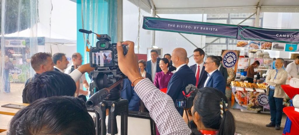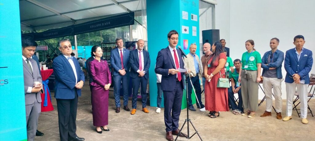 លោកជំទាវ ចម និម្មល រដ្ឋមន្ត្រីក្រសួងពាណិជ្ជកម្ម និងឯកឧត្តម អូលីវ្យេ រីឆាដ (Olivier RICHARD) ឯកអគ្គរដ្ឋទូត បារាំងប្រចាំកម្ពុជា បានចូលរួមជាកិត្តិយសនៅក្នុងពិធីបើកពិព័រណ៍នេះ។