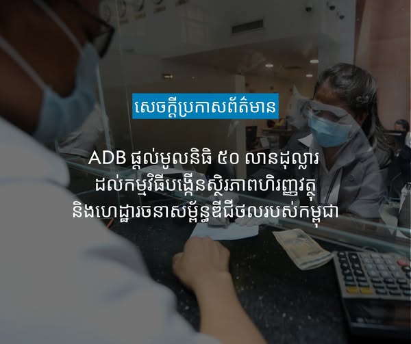 នៅថ្ងៃនេះ ធនាគារអភិវឌ្ឍន៍អាស៊ី (ADB) បានប្រកាសផ្តល់ហិរញ្ញប្បទានចំនួន ៥០លានដុល្លារដល់កម្ពុជា ដើម្បីពង្រឹងវិស័យហិរញ្ញវត្ថុ ដោយផ្តោតលើការគាំទ្រដល់គ្រឹះស្ថានធនាគារ និងមិនមែនធនាគារ ព្រមទាំងហេដ្ឋារចនាសម្ព័ន្ធហិរញ្ញវត្ថុឌីជីថល និងសមត្ថភាពហិរញ្ញវត្ថុប្រកបដោយនិរន្តរភាព។