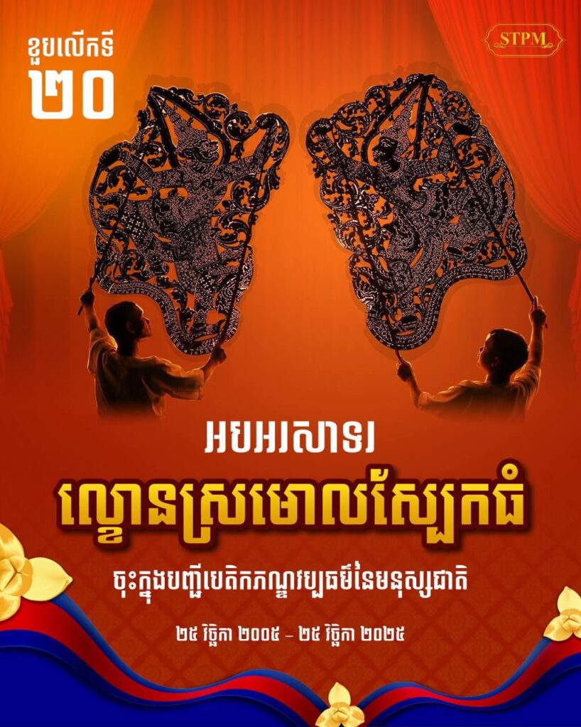 ភ្នំពេញ៖ សម្តេចមហាបវរធិបតី ហ៊ុន ម៉ាណែត នាយករដ្ឋមន្រ្តី នៃព្រះរាជាណាចក្រកម្ពុជា ផ្ញើសារអបអរសាទរ ខួបលើកទី២០ ល្ខោនស្រមោលស្បែកធំ ចុះក្នុងបញ្ជីបេតិកភណ្ឌវប្បធម៌នៃមនុស្សជាតិ ២៥ វិច្ឆិកា ២០០៥ – ២៥ វិច្ឆិកា ២០២៥ ។ នេះបើតាមបណ្ដាញសង្គមសម្ដេចធិបតី នាព្រឹកថ្ងៃទី២៥វិច្ឆិកា ២០២៥ ។