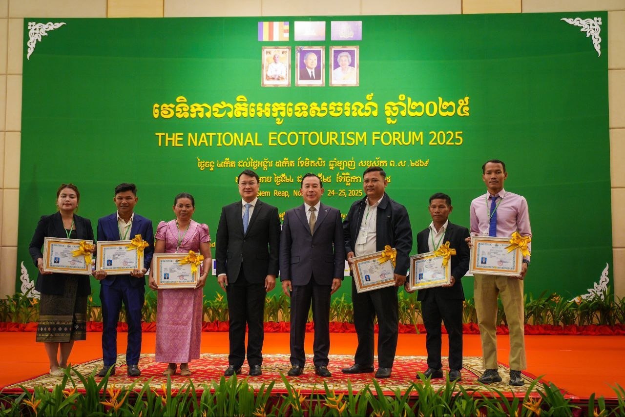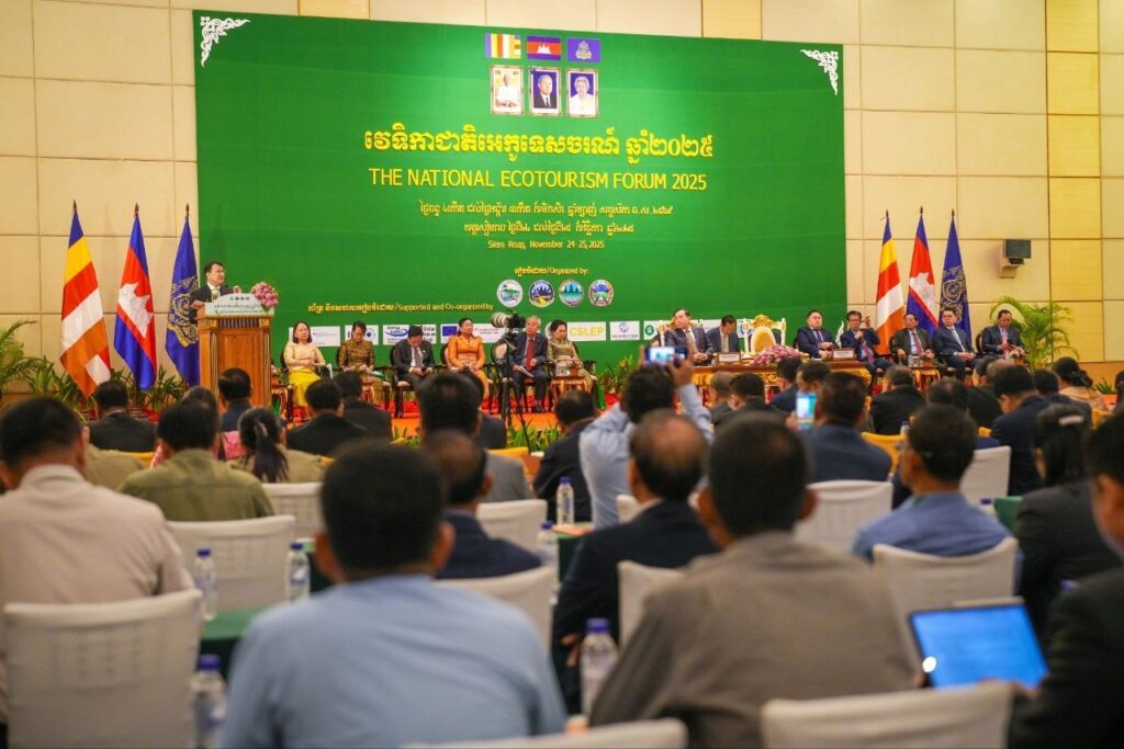 (ខេត្តសៀមរាប)៖ ឯកឧត្តម ហួត ហាក់ រដ្ឋមន្រ្តីក្រសួងទេសចរណ៍ និងជាប្រធានក្រុមការងារអន្តរក្រសួងគ្រប់គ្រង និងអភិវឌ្ឍសហគមន៍ទេសចរណ៍ និងអេកូទេសចរណ៍ និង ឯកឧត្តម ឌិត ទីណា រដ្ឋមន្រ្តីក្រសួងកសិកម្ម រុក្ខាប្រមាញ់ និងនេសាទ និងជាអនុប្រធាន នៃ ក.គ.អ.អ កាលពីថ្ងៃទី២៤ ខែវិច្ឆិកា ឆ្នាំ២០២៥ បានអញ្ជើញបើកវេទិកាជាតិអេកូទេសចរណ៍លើកទី៤ នៅខេត្តសៀមរាប។