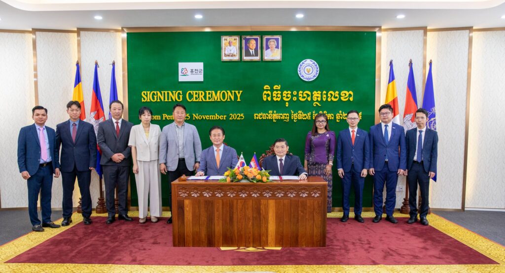 (ភ្នំពេញ)៖ ក្រសួងការងារ និងបណ្តុះបណ្តាលវិជ្ជាជីវៈ និង ស្រុកហុងឆុន នៃសាធារណរដ្ឋកូរ៉េ ចុះអនុស្សរណៈនៃការយោគយល់គ្នា ដើម្បីផ្តល់ឱកាសការងារជូនពលរដ្ឋកម្ពុជាដែលមានបំណងទៅធ្វើការជាពលកររដូវកាលនៅកូរ៉េ ។ ពិធីចុះហត្ថលេខានេះ ធ្វើឡើរវាង ឯកឧត្តម ហេង សួរ រដ្ឋមន្ត្រីក្រសួងការងារ និងបណ្តុះបណ្តាលវិជ្ជាជីវៈ និងលោក ស៊ីន យ៉ុងជេ អភិបាលស្រុកហុងឆុន ខេត្តកាំងវ៉ុនដូ នៃសាធារណរដ្ឋកូរ៉េ កាលពីថ្ងៃទី២៥ ខែវិច្ឆិកា ឆ្នាំ២០២៥ នៅទីស្តីការក្រសួងការងារ និងបណ្តុះបណ្តាលវិជ្ជាជីវៈ។
