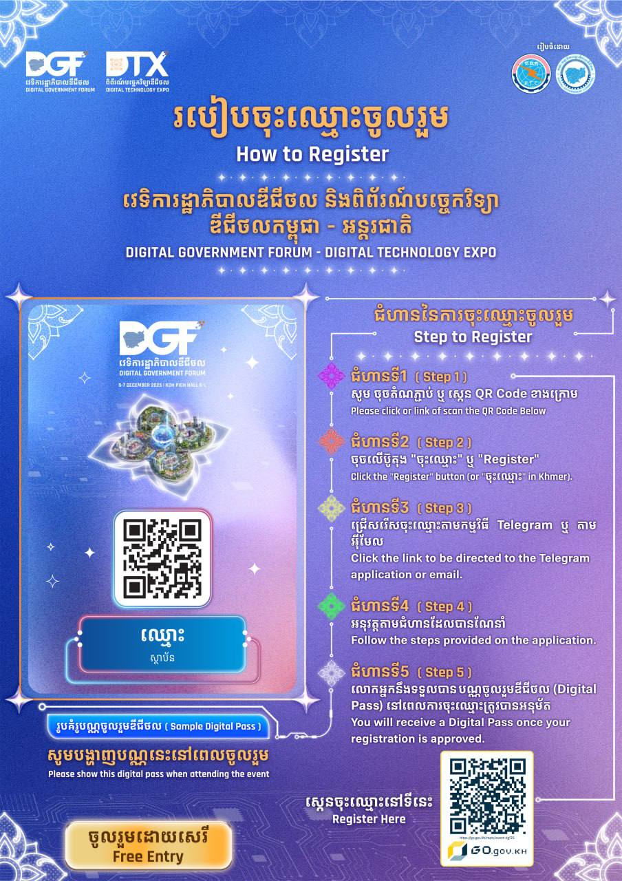តោះ ! ចុះឈ្មោះចូលរួមវេទិការដ្ឋាភិបាលឌីជីថល ឆ្នាំ២០២៥ និងពិព័រណ៍បច្ចេកវិទ្យាឌីជីថលកម្ពុជា-អន្តរជាតិ