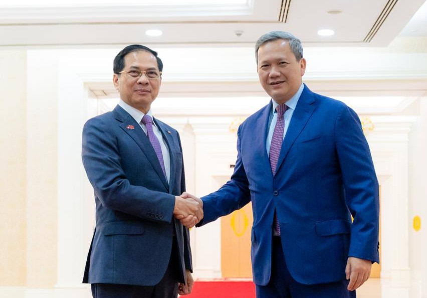 សម្តេចមហាបវរធិបតី ហ៊ុន ម៉ាណែត នាយករដ្ឋមន្ត្រី នៃព្រះរាជាណាចក្រកម្ពុជា បានអនុញ្ញាតឱ្យ ឯកឧត្តម Bui Thanh Son ឧបនាយករដ្ឋមន្ត្រីនៃសាធារណរដ្ឋសង្គមនិយមវៀតណាម ចូលជួបសម្ដែងការគួរសម និងពិភាក្សាការងារ នៅវិមានសន្តិភាព នារសៀលថ្ងៃទី២៨ ខែវិច្ឆិកា ឆ្នាំ២០២៥។