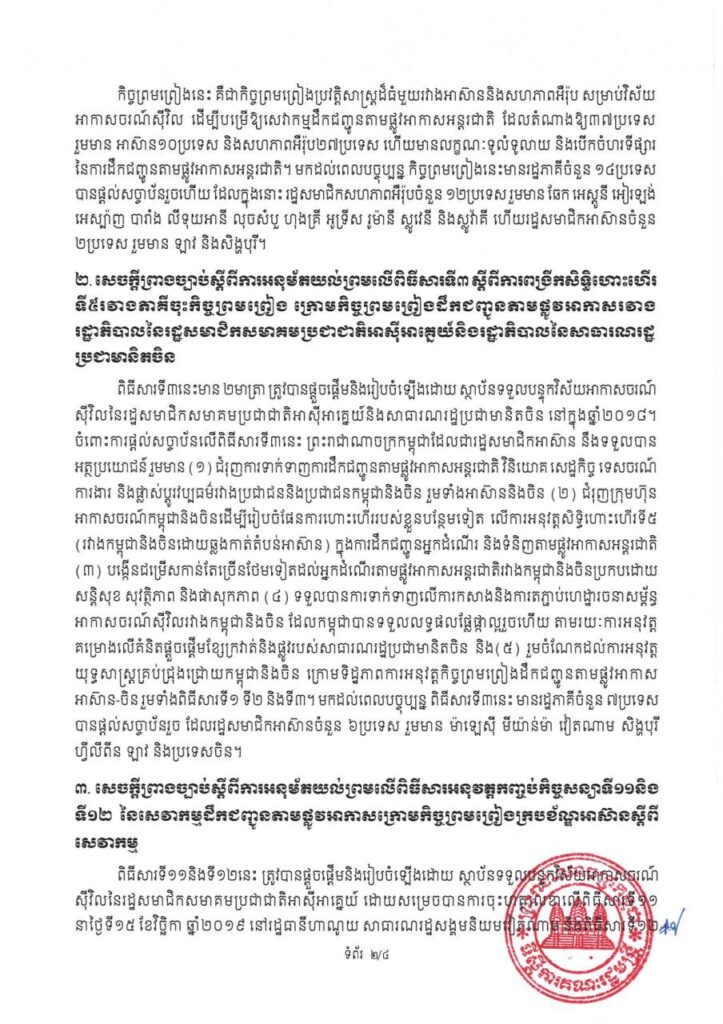 គណៈរដ្ឋមន្ត្រី អនុម័ត កញ្ចប់កិច្ចសន្យា នៃសេវាកម្មដឹកជញ្ជូនតាមផ្លូវអាកាស ក្របខ័ណ្ឌអាស៊ាន