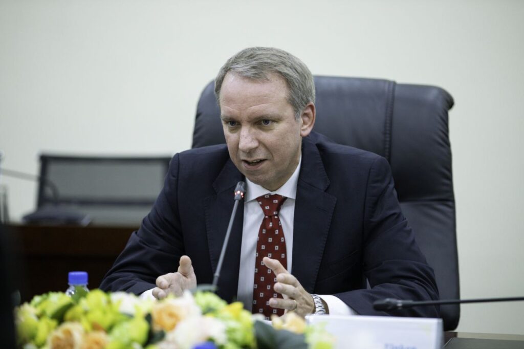 ជាការឆ្លើយតប លោក Thomas Finken បានថ្លែងអំណរគុណចំពោះ ឯកឧត្ដមរដ្ឋមន្រ្តី ដែលបានផ្តល់ព័ត៌មានយ៉ាងលម្អិតពាក់ព័ន្ធនឹងវិស័យសន្តិសុខសង្គមរបស់កម្ពុជា ព្រមទាំងបានកោតសរសើរ និងវាយតម្លៃខ្ពស់ចំពោះកិច្ចខិតខំប្រឹងប្រែងរបស់ក្រសួង។