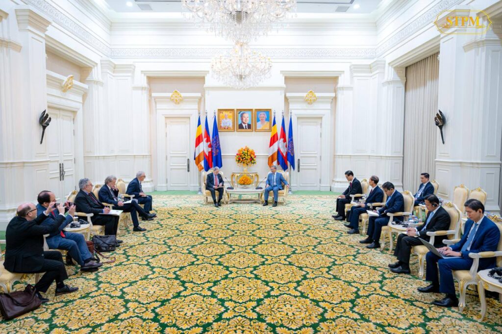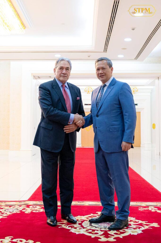 ក្នុងឱកាសដឹកនាំគណៈប្រតិភូ ចូលជួបសម្ដែងការគួរសម និងពិភាក្សាការងារ ជាមួយសម្តេចមហាបវរធិបតី ហ៊ុន ម៉ាណែត នាយករដ្ឋមន្ត្រី កម្ពុជា នៅវិមានសន្តិភាព ឯកឧត្តម Winston Peters រដ្ឋមន្ត្រីការបរទេសនូវែលសេឡង់ បានកោតសរសើរចំពោះការរីកចម្រើនគួរឱ្យកត់សម្គាល់របស់កម្ពុជា។