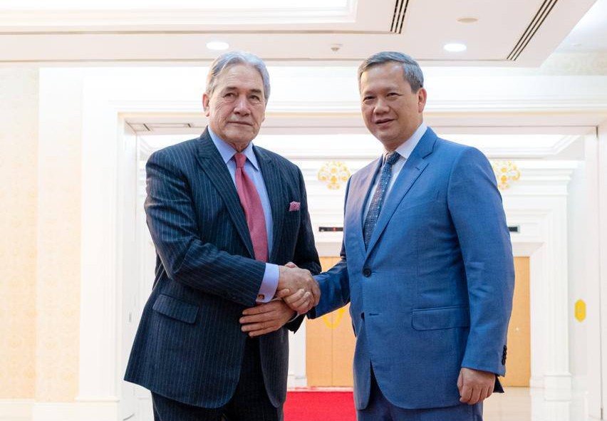 សម្តេចមហាបវរធិបតី ហ៊ុន ម៉ាណែត នាយករដ្ឋមន្ត្រី នៃព្រះរាជាណាចក្រកម្ពុជា បានអនុញ្ញាតឱ្យ ឯកឧត្តម Winston Peters រដ្ឋមន្ត្រីការបរទេសនូវែលសេឡង់ និង គណៈប្រតិភូចូលជួបសម្ដែងការគួរសម និងពិភាក្សាការងារ នៅវិមានសន្តិភាព នាព្រឹកថ្ងៃទី២៩ ខែវិច្ឆិកា ឆ្នាំ២០២៥។