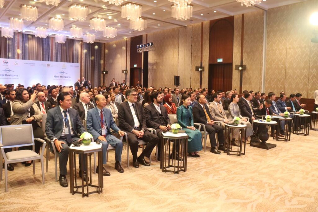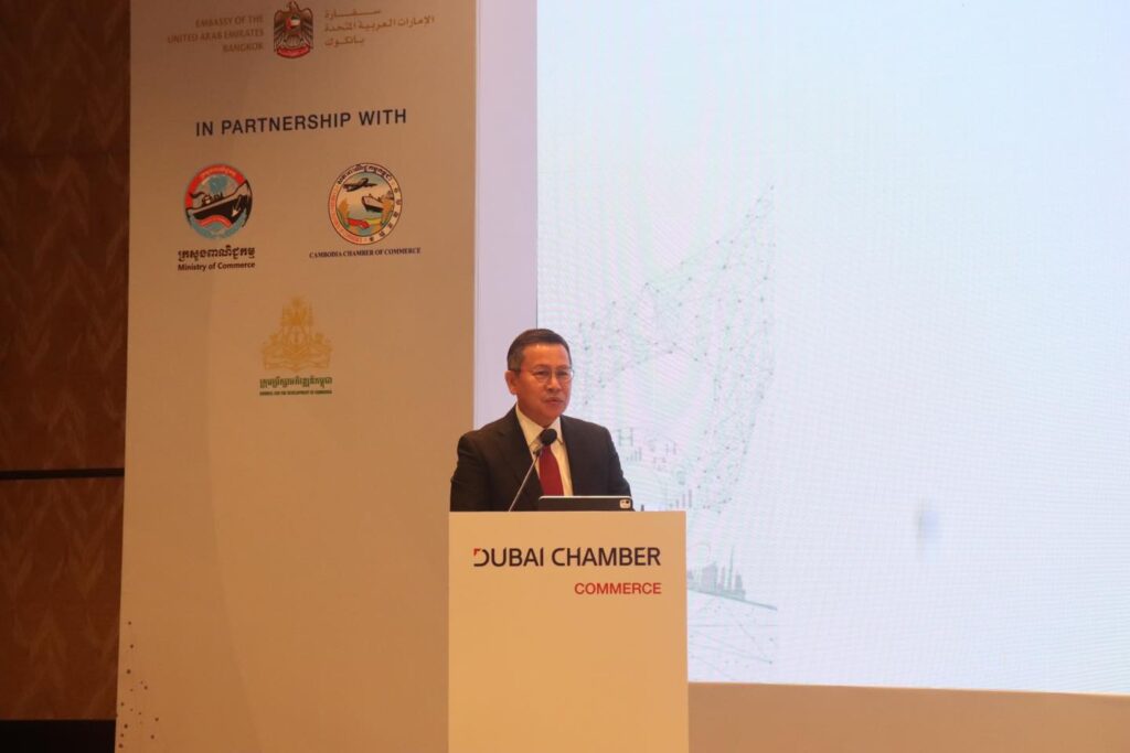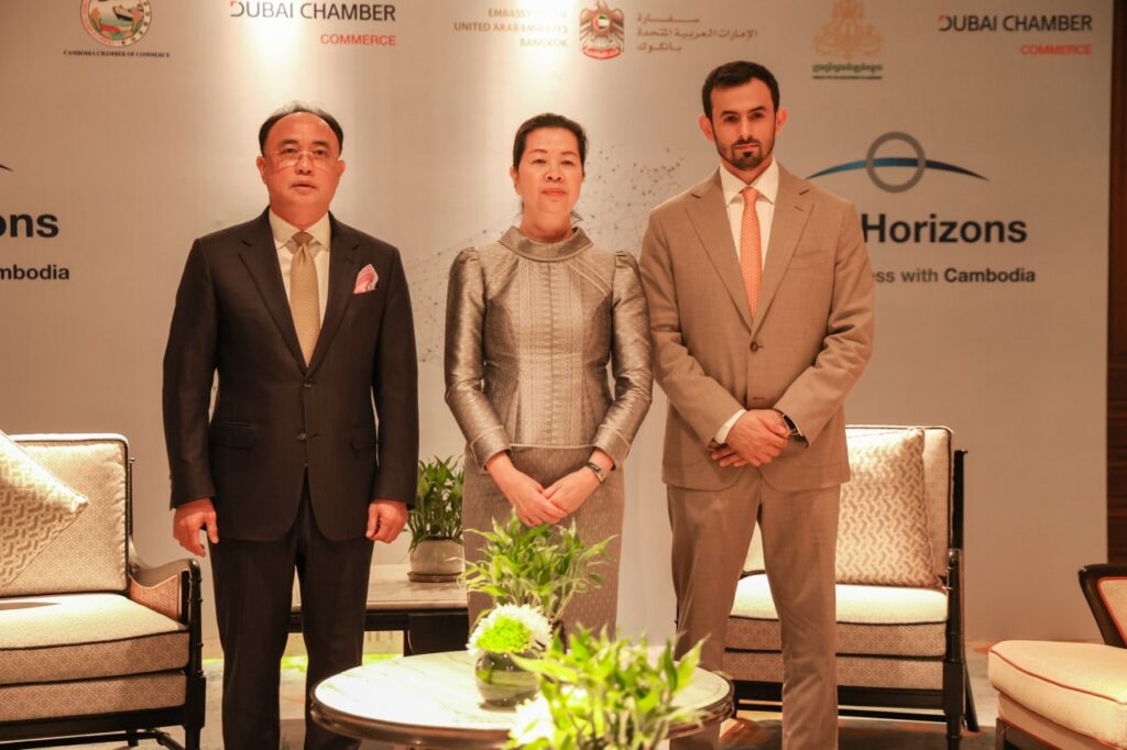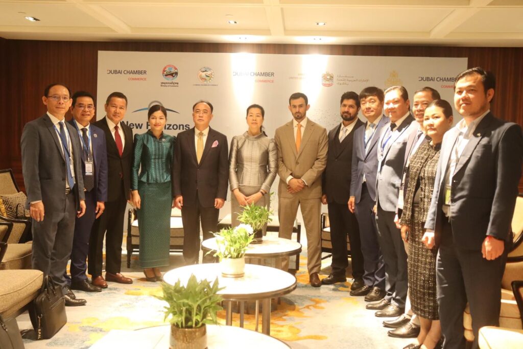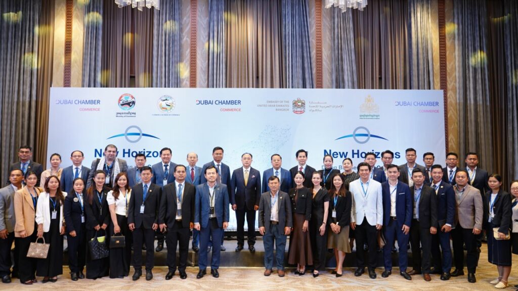 (ភ្នំពេញ)៖ សភាពាណិជ្ជកម្ម Dubai នៃប្រទេស អេមីរ៉ាតអារ៉ាប់រួម បានរៀបចំវេទិការ ធុរកិច្ចជាមួយគណៈប្រតិភូឌូបៃ ស្តីពី «ការធ្វើធុរកិច្ចនៅកម្ពុជា» New Horizons: Doing Business with Cambodia ក្នុងគោលបំណងលើកកម្ពស់ការយល់ដឹងអំពីសក្តានុពល និងកាលានុវត្តភាពវិនិយោគនៅកម្ពុជា ។ ក្រសួង ស្ថាប័នពាក់ព័ន្ធកម្ពុជា ដែលសហការចូលរួមឲ្យមានវេទិកានេះឡើង នៅថ្ងៃទី២៨ ខែវិច្ឆិកា ឆ្នាំ២០២៥ នៅសណ្ឋាគារ Hyatt Regency Phnom Penh រួមមាន ក្រសួងពាណិជ្ជកម្មកម្ពុជា, ក្រុមប្រឹក្សាអភិវឌ្ឍន៍កម្ពុជា និងសភាពាណិជ្ជកម្មកម្ពុជា ។
