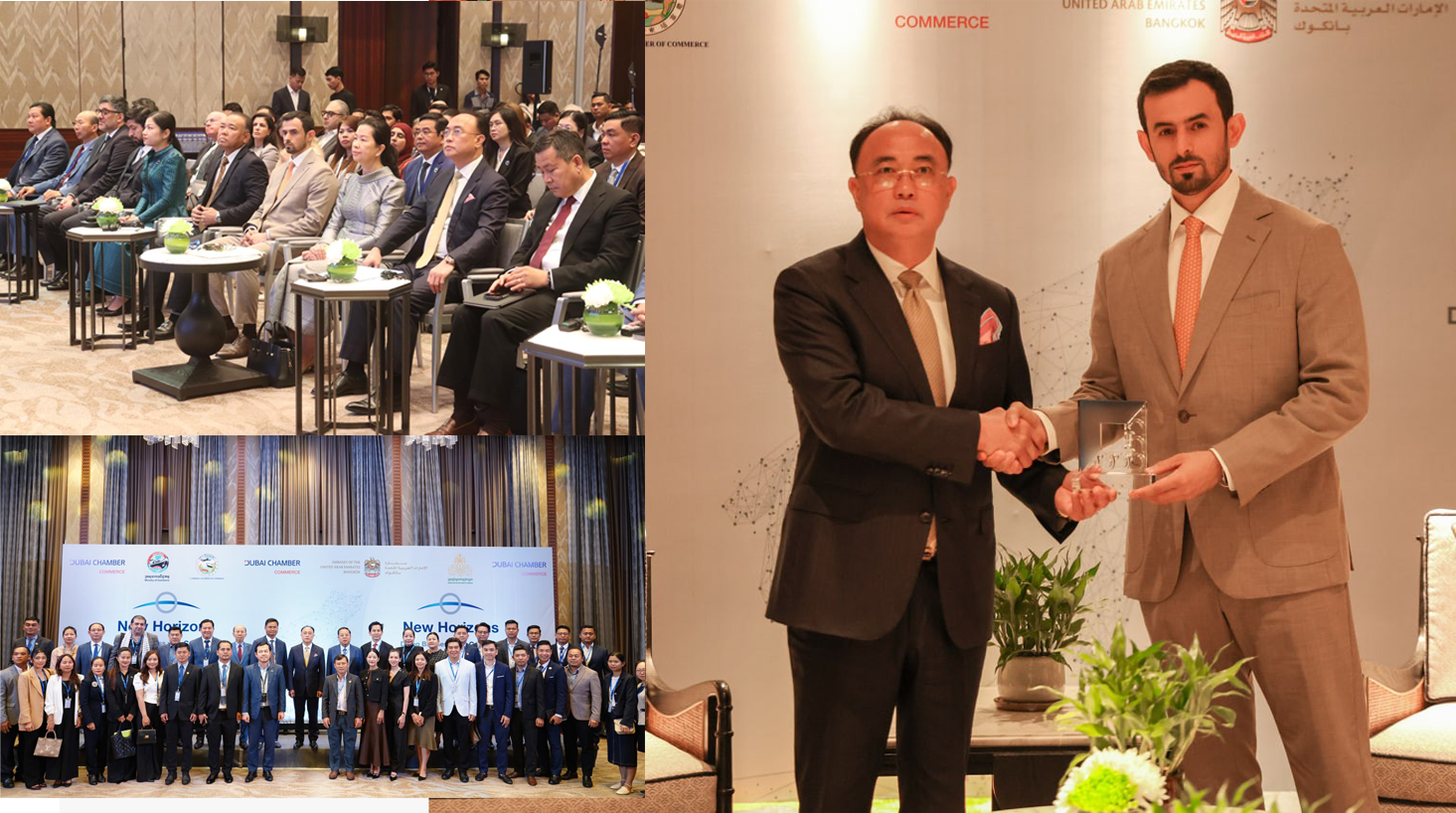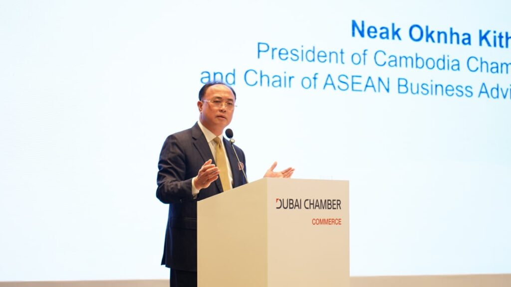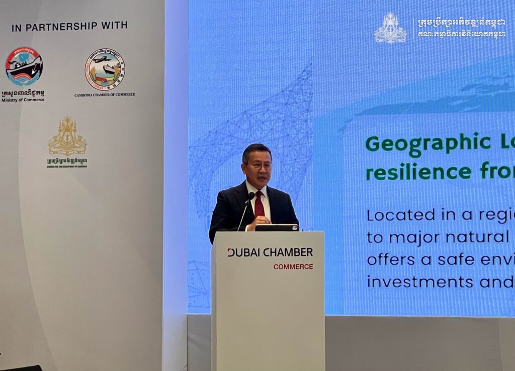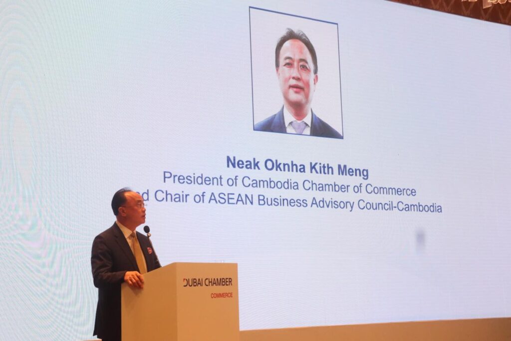(ភ្នំពេញ)៖ សភាពាណិជ្ជកម្ម Dubai នៃប្រទេស អេមីរ៉ាតអារ៉ាប់រួម បានរៀបចំវេទិការ ធុរកិច្ចជាមួយគណៈប្រតិភូឌូបៃ ស្តីពី «ការធ្វើធុរកិច្ចនៅកម្ពុជា» New Horizons: Doing Business with Cambodia ក្នុងគោលបំណងលើកកម្ពស់ការយល់ដឹងអំពីសក្តានុពល និងកាលានុវត្តភាពវិនិយោគនៅកម្ពុជា ។ ក្រសួង ស្ថាប័នពាក់ព័ន្ធកម្ពុជា ដែលសហការចូលរួមឲ្យមានវេទិកានេះឡើង នៅថ្ងៃទី២៨ ខែវិច្ឆិកា ឆ្នាំ២០២៥ នៅសណ្ឋាគារ Hyatt Regency Phnom Penh រួមមាន ក្រសួងពាណិជ្ជកម្មកម្ពុជា, ក្រុមប្រឹក្សាអភិវឌ្ឍន៍កម្ពុជា និងសភាពាណិជ្ជកម្មកម្ពុជា ។