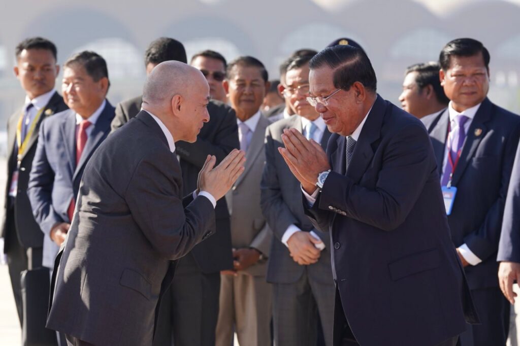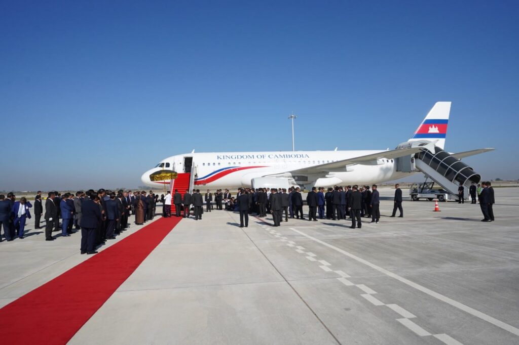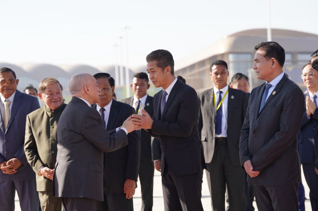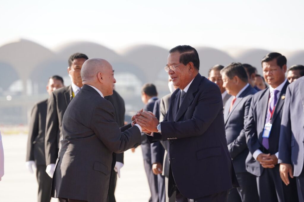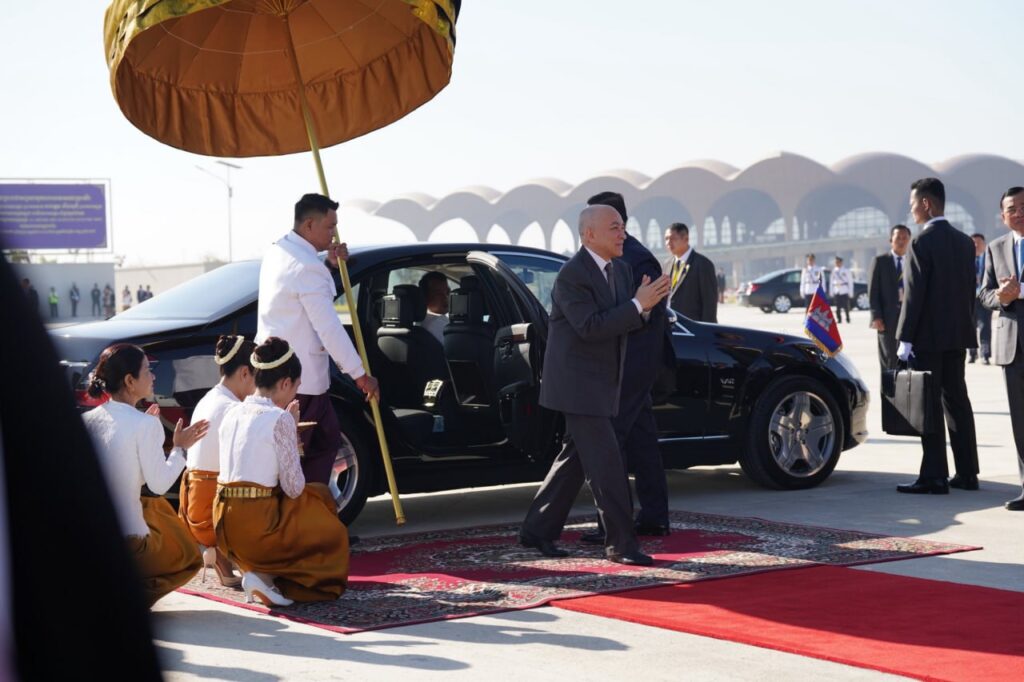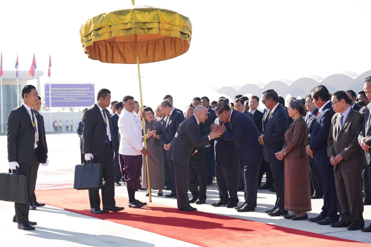 នៅអាកាសយានដ្ឋានអន្តរជាតមរតកតេជោ ,អញ្ជើញថ្វាយព្រះរាជដំណើរព្រះករុណាព្រះមហាក្សត្រ មានវត្តមានសម្តេចអគ្គមហាសេនាបតីតេជោ ហ៊ុន សែន ប្រធានព្រឹទ្ធសភា សម្តេចធិបតី ហ៊ុន ម៉ាណែត នាយករដ្ឋមន្ត្រី ថ្នាក់ដឹកនាំកំពូល ឥស្សរជនជាន់ខ្ពស់របស់ជាតិ ព្រះរាជវង្សានុវង្ស ។