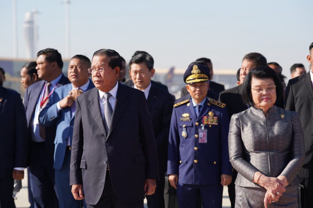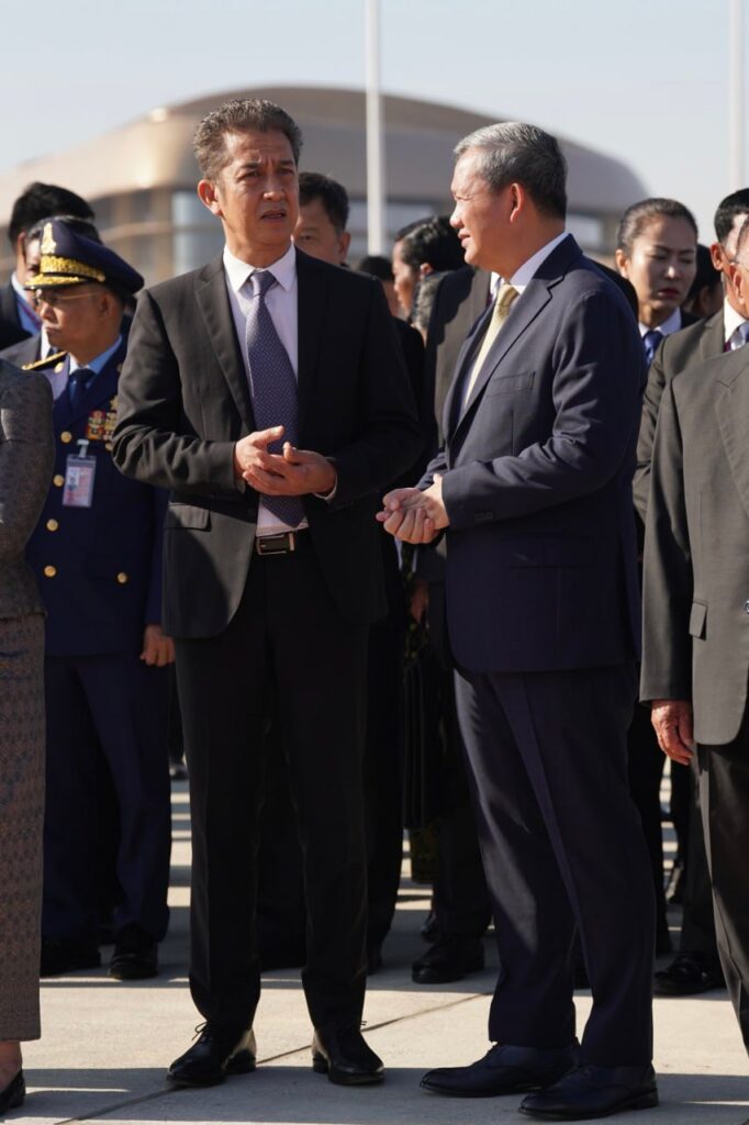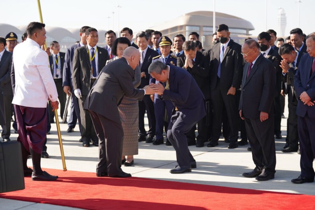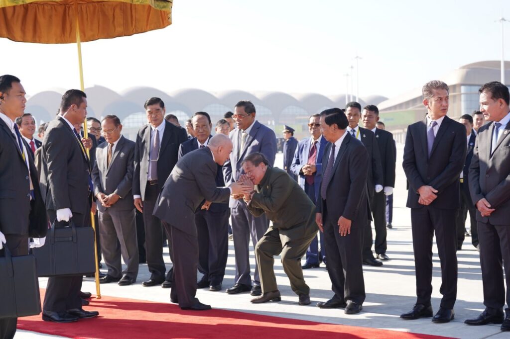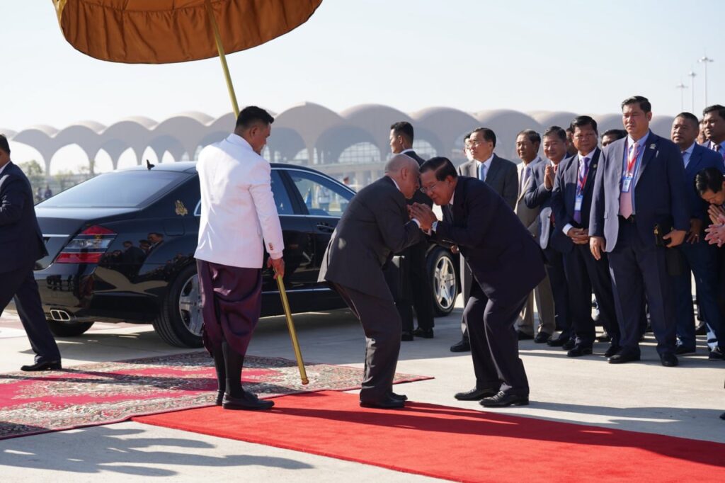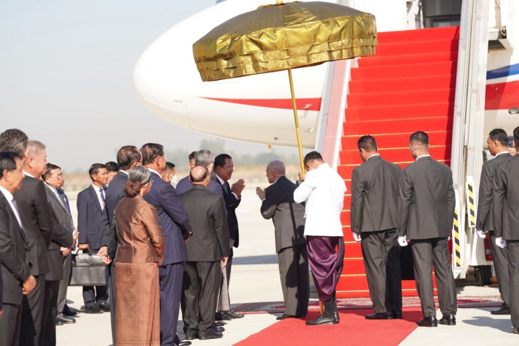 នៅអាកាសយានដ្ឋានអន្តរជាតមរតកតេជោ ,អញ្ជើញថ្វាយព្រះរាជដំណើរព្រះករុណាព្រះមហាក្សត្រ មានវត្តមានសម្តេចអគ្គមហាសេនាបតីតេជោ ហ៊ុន សែន ប្រធានព្រឹទ្ធសភា សម្តេចធិបតី ហ៊ុន ម៉ាណែត នាយករដ្ឋមន្ត្រី ថ្នាក់ដឹកនាំកំពូល ឥស្សរជនជាន់ខ្ពស់របស់ជាតិ ព្រះរាជវង្សានុវង្ស ។