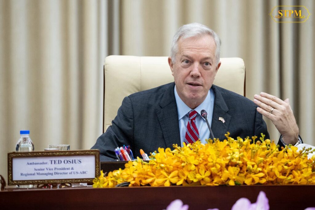 ក្នុងឱកាសនៃជំនួប, ឯកឧត្តម Ted Osius បានសម្ដែងនូវការអរគុណយ៉ាងជ្រាលជ្រៅចំពោះ សម្តេចបវរធិបតី ដែលបានអនុញ្ញាតឱ្យរូបឯកឧត្តម និងគណៈប្រតិភូ ចូលជួបសម្ដែងការគួរសម និងពិភាក្សាការងារ។ ឯកឧត្តម ក៏បានថ្លែងអំណរគុណដល់រាជរដ្ឋាភិបាល និងក្រសួង-ស្ថាប័ន ពាក់ព័ន្ធកម្ពុជាទាំងអស់ ដែលតែងតែបានផ្ដល់ការគាំទ្រ និងកិច្ចសហការយ៉ាងជិតស្និទ្ធជាមួយ US-ABC នាពេលកន្លងមក ព្រមទាំងបានវាយតម្លៃខ្ពស់ចំពោះការប្ដេជ្ញាចិត្តរបស់ក្រសួង-ស្ថាប័នកម្ពុជា ក្នុងការដោះស្រាយបញ្ហា និងសំណូមពរនានា របស់បណ្ដាក្រុមហ៊ុនដែលកំពុងវិនិយោគនៅកម្ពុជា ប្រកបភាពស្មោះត្រង់ និងបើកចំហ។ ឯកឧត្តម Ted Osius ក៏បានសម្ដែងនូវសុទិដ្ឋិនិយមចំពោះភាពជាអ្នកដឹកនាំរបស់សម្ដេចបវរធិបតី និងបានវាយតម្លៃខ្ពស់ចំពោះការរៀបចំវេទិការាជរដ្ឋាភិបាល-ផ្នែកឯកជន (G-PSF) ដែលជាវេទិកាដ៏មានសារៈសំខាន់សម្រាប់វិនិយោគិន និងវិស័យឯកជន។
