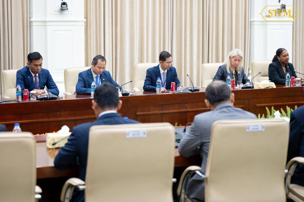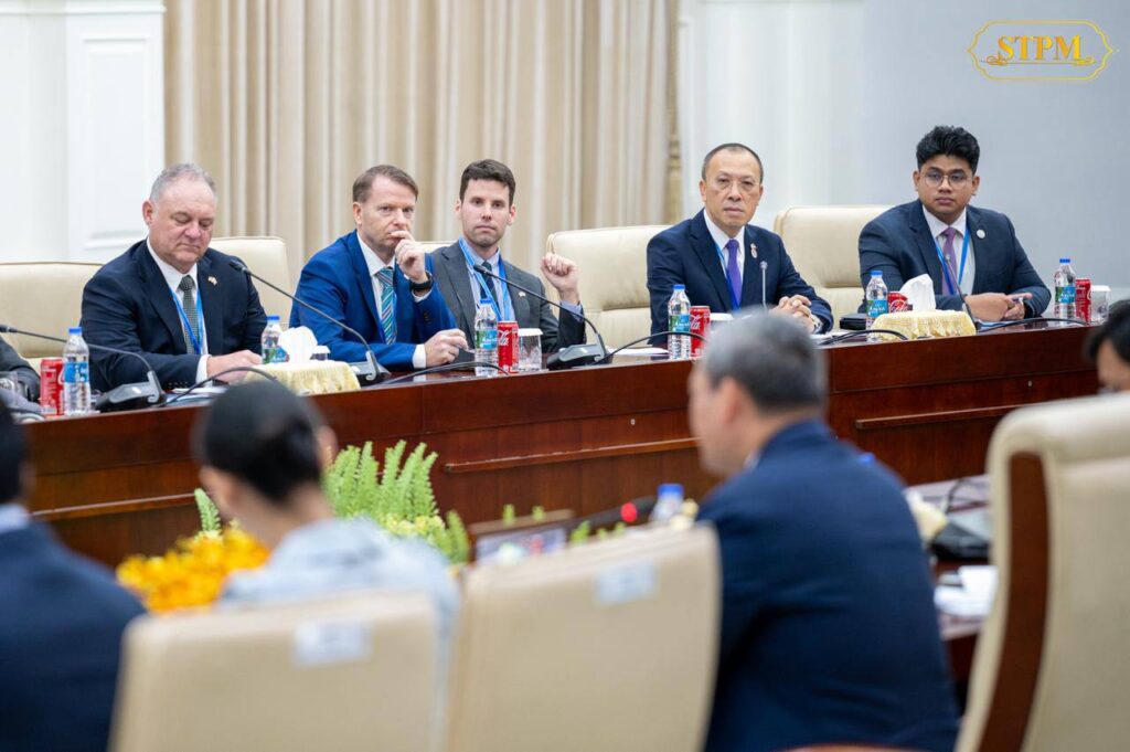 កាលពីព្រឹកថ្ងៃទី០២ ខែធ្នូ ឆ្នាំ២០២៥, សម្តេចមហាបវរធិបតី ហ៊ុន ម៉ាណែត នាយករដ្ឋមន្រ្តី នៃព្រះរាជាណាចក្រកម្ពុជា បានអនុញ្ញាតឱ្យឯកអគ្គរដ្ឋទូតអាម៉េរិកចូលនិវត្តន៍ Ted Osius បច្ចុប្បន្នជាអនុប្រធានជាន់ខ្ពស់ និងជានាយកគ្រប់គ្រងប្រចាំតំបន់នៃក្រុមប្រឹក្សាធុរកិច្ចសហរដ្ឋអាម៉េរិក-អាស៊ាន និងគណៈប្រតិភូ ចូលជួបសម្តែងការគួរសម និងពិភាក្សាការងារ នៅវិមានសន្តិភាព។