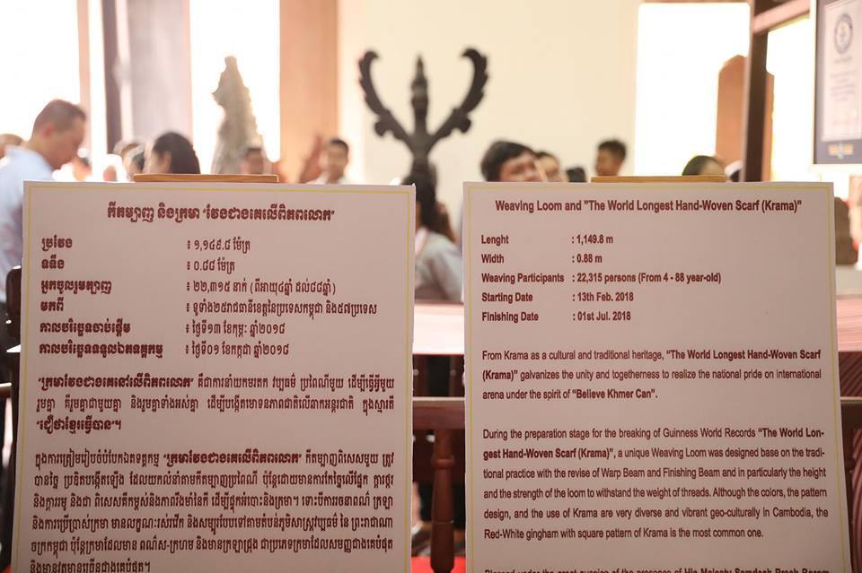 គួរបញ្ជាក់ថា កាលពីថ្ងៃទី១ កក្កដា ឆ្នាំ២០១៨ ក្រមាខ្មែរ ត្រូវបានប្រកាសជាប់ឯកទគ្គកម្មជាក្រមាវែងជាងគេនៅលើពិភពលោក ដែលមានប្រវែង ១១៤៩.៨ម៉ែត្រ ចំណាយពេលត្បាញរយៈពេលជាង៥ខែ ដោយមានក្រុមការងារ GoGo Cambodia ជាអ្នកផ្ដួចផ្ដើមធ្វើយុទ្ធនាការ ហើយមានការចូលរួមពីប្រជាពលរដ្ឋ ចាប់ផ្ដើមដំបុងនាថ្ងៃទី១៤ខែកុម្ភៈ ឆ្នាំ២០១៨ នៅទីតាំងវាលព្រះមេរុ ក្នុងនោះអ្នកចុះឈ្មោះរៀនត្បាញចំនួន ២២,៣១៥នាក់ និងមានភ្ញៀវអន្តរជាតិចំនួន ១,១៣១នាក់ មកពី ៥៧ប្រទេសជុំវិញពិភពលោក ចូលរួមត្បាញបានច្រើនជាងគេ គឺសហរដ្ឋអាមេរិក បារាំង ចិន ថៃ និងជប៉ុន។