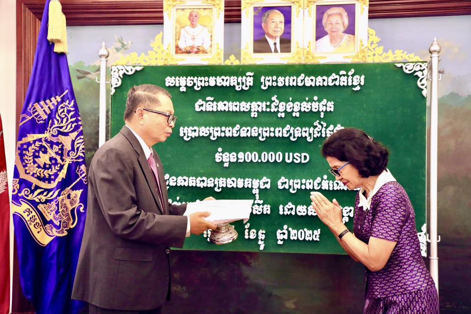 ភ្នំពេញ ៖ សម្តេចព្រះមហាក្សត្រី នរោត្តម មុនិនាថ សីហនុ ព្រះវររាជមាតាជាតិខ្មែរ ព្រះប្រធានកិត្តិយសកាកបាទក្រហមកម្ពុជា ជាទីគោរពសក្ការៈដ៏ខ្ពង់ខ្ពស់បំផុត បានសព្វព្រះរាជហឫទ័យប្រោសព្រះរាជទាននូវព្រះរាជទ្រព្យចំនួន ១០ម៉ឺនដុល្លារ ជូនសម្តេចកិត្តិព្រឹទ្ធបណ្ឌិត ប៊ុន រ៉ានី ហ៊ុនសែន ប្រធានកាកបាទក្រហមកម្ពុជា ដើម្បីជួយដល់ប្រជារាស្ត្រភៀសសឹក នៅតាមបណ្តោយព្រំដែនកម្ពុជា-ថៃ។