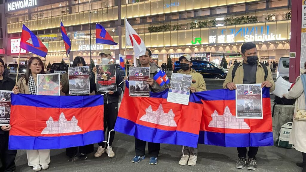 (ជប៉ុន)៖ សហគមន៍ខ្មែរ ពលករ និងនិស្សិតខ្មែរនៅប្រទេសជប៉ុន បានប្រមូលផ្តុំគ្នានៅកណ្តាលទីក្រុងតូក្យូ និងខេត្តអូសាកា នាថ្ងៃទី១០ ខែធ្នូ ឆ្នាំ២០២៥នេះ ដើម្បីសម្តែងមតិថ្កោលទោសយ៉ាងដាច់អហង្ការបំផុតចំពោះទង្វើអមនុស្សធម៌ដ៏សាហាវឃោរឃៅយង់ឃ្នងរបស់យោធាថៃ ដែលបានបើកការវាយប្រហារគ្មានរើសគោលដៅដោយប្រើប្រាស់អាវុធគ្រប់ធុនក្នុងការឈ្លានពាន និងទន្ទ្រានចូលដែនអធិបតេយ្យភាពរបស់កម្ពុជាសាជាថ្មីម្តងទៀត ចាប់តាំងពីថ្ងៃទី៧ ខែធ្នូ ឆ្នាំ២០២៥។