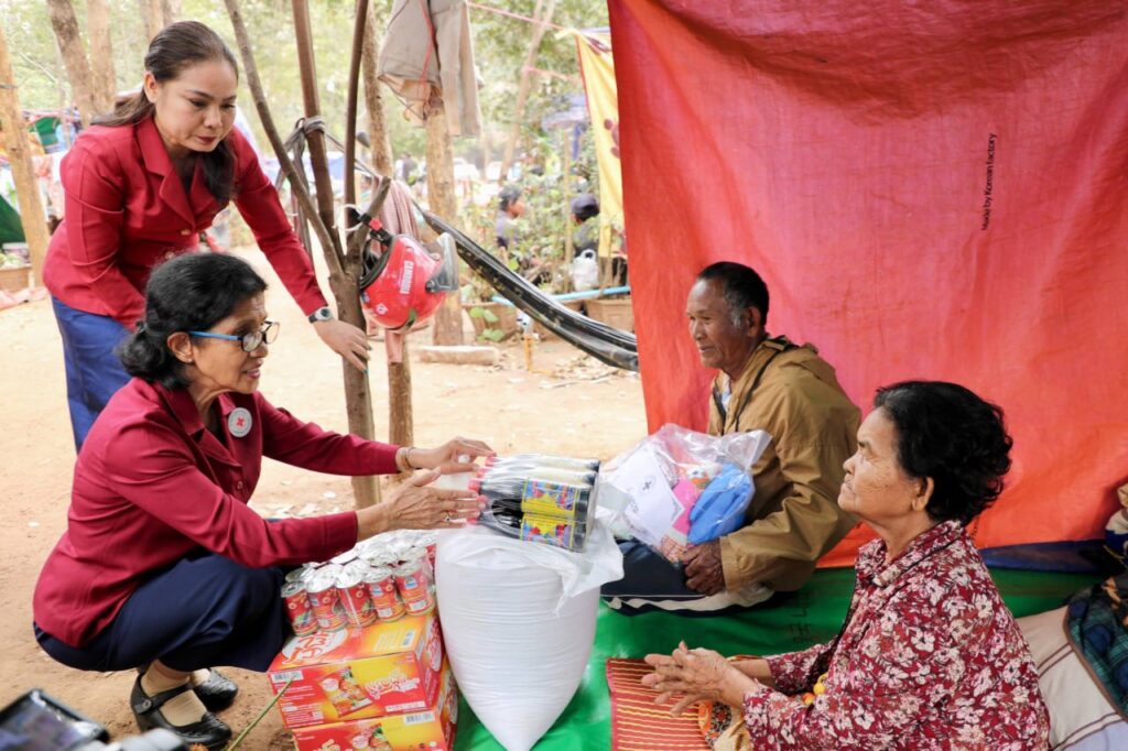 សូមបញ្ជាក់ថា ព្រះរាជអំណោយដ៏ឧត្តុង្គឧត្តមរបស់អង្គព្រះមហាក្សត្រ និងសម្តេចព្រះវររាជមាតាជាតិខ្មែរ ផ្តល់ជូនបងប្អូនប្រជារាស្ត្រភៀសសឹក ក្នុងមួយគ្រួសារៗទទួលបាន៖ អង្ករ ២៥គីឡូក្រាម, មី ២កេស, ត្រីខ ២០កំប៉ុង, ទឹកស៊ីអ៊ីវ ៦ដប និងឃីត (មុង ភួយ សារុង ក្រមា) ១កញ្ចប់។ បន្ថែមពីនេះ កាកបាទក្រហមកម្ពុជា បានឧបត្ថម្ភថវិកាចំនួន ៤០០ដុល្លារអាម៉េរិក ដើម្បីទិញម៉ូទ័របូមទឹកចំនួន ២គ្រឿង សម្រាប់ប្រើប្រាស់ក្នុងមណ្ឌលសុវត្ថិភាពផងដែរ ៕ ដោយ / គ្រី សម្បត្តិ