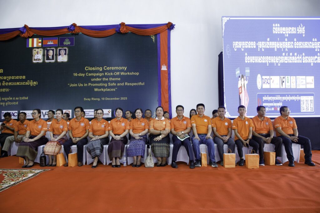 សូមបញ្ជាក់ថា ឆ្នាំ២០២៥ នេះ ជាខួបលើកទី៣៤ ហើយយុទ្ធនាការ ១៦ថ្ងៃ ដែលបានដំណើរការបញ្ចប់ប្រកបដោយជោគជ័យ ហើយក្នុងនោះចំណែកដ៏សំខាន់នៃការសម្រេចបាននេះអាស្រ័យដោយការចូលរួមគាំទ្រយ៉ាងសកម្មពីដៃគូនានាដូចជា៖ តំណាងតំបន់សេដ្ឋកិច្ចពិសេសស្វាយរៀង ហ្គីហ្គា រីសស៍, តំណាងគម្រោងរោងចក្រកាន់តែប្រសើរនៅកម្ពុជា (ILO-BFC), សហជីព, សមាគមវាយនភណ្ឌ សម្លៀកបំពាក់ ស្បែកជើង និងផលិតផលធ្វើដំណើរនៅកម្ពុជា (TAFTAC), សហភាពសហជីព, ក្រុមហ៊ុន VF (Cambodia) Sourcing Co., Ltd., អង្គការ Oxfam, អង្គការ Care Cambodia, អង្គការ GIZ, និងដៃគូពាក់ព័ន្ធ៕
