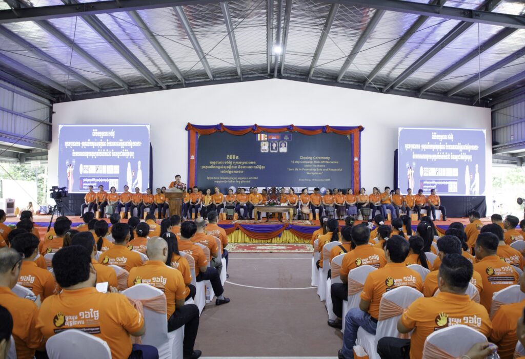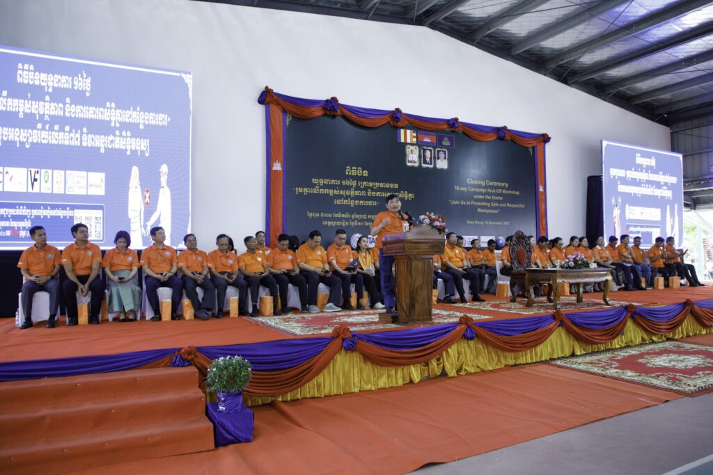 ប្រសាសន៍ ឯកឧត្តម ហេង សួរ រដ្ឋមន្រ្តីក្រសួងការងារ និងបណ្តុះបណ្តាលវិជ្ជាជីវៈ ក្នុងឱកាសអញ្ជើញបិទ យុទ្ធនាការ ១៦ថ្ងៃ ប្រឆាំងអំពើហិង្សាផ្អែកលើយេនឌ័រ ក្រោមប្រធានបទ «រួមគ្នាលើកកម្ពស់សុវត្ថិភាព និងការគោរពសិទ្ធិគ្នានៅកន្លែងការងារ» និងអបអរសាទរ ខួបអនុស្សាវរីយ៍លើកទី៧៧ នៃទិវាអន្តរជាតិសិទ្ធិមនុស្ស ដែលត្រូវបានរៀបចំឡើងនារសៀលថ្ងៃទី១០ ខែធ្នូ ឆ្នាំ២០២៥ នៅតំបន់សេដ្ឋកិច្ចពិសេសស្វាយរៀង ហ្គីហ្គា រីសស៍ ខេត្តស្វាយរៀង ដោយមានការចូលរួមពី ថ្នាក់ដឹកនាំក្រសួង និងក្រសួងស្ថាប័នពាក់ព័ន្ធ រដ្ឋបាលខេត្តស្វាយរៀង រួមជាមួយអង្គការជាតិ អន្តរជាតិជាដៃគូពាក់ព័ន្ធ សរុបប្រមាណ ១៤០០នាក់ បានចូលរួមក្នុងពិធីនេះ។