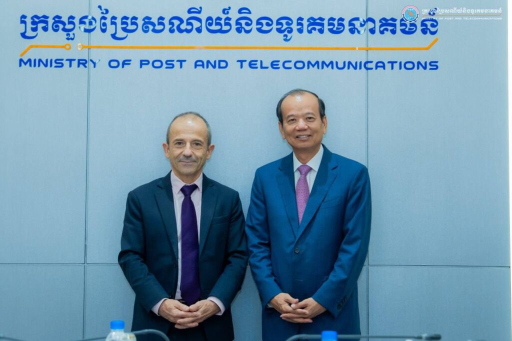 ភ្នំពេញ៖ ឯកឧត្តម ជា វ៉ាន់ដេត រដ្ឋមន្រ្តីក្រសួងប្រៃសណីយ៍និងទូរគមនាគមន៍ (ក.ប.ទ. រសៀលថ្ងៃទី១០ ខែធ្នូ ឆ្នាំ២០២៥ បានទទួលជួបពិភាក្សាការងារជាមួយ លោក Jean-Pierre MARCELLI នាយកទីភ្នាក់ងារបារាំងសម្រាប់ការអភិវឌ្ឍ (The Agence Française de Développement – AFD) ប្រចាំតំបន់អាស៊ីអាគ្នេយ៍ នៅទីស្ដីការ ក.ប.ទ.។