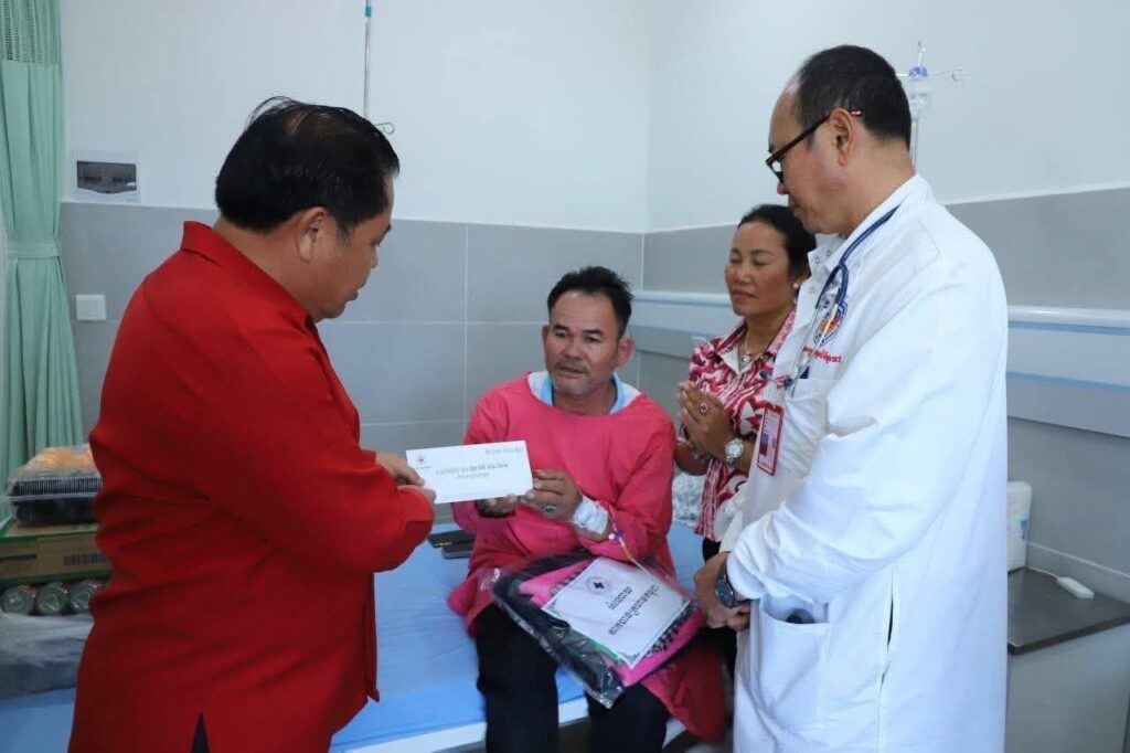 ដោយក្តីក្តុកក្តួលរំជួលចិត្ត អាណិតអាសូរ ការគិតគូរជាប់ជានិច្ច និងដើម្បីជួយសម្រាលការលំបាកដល់វីរៈយុទ្ធជនដែលបានរងរបួសនៅសមរភូមិ សម្តេចកិត្តិព្រឹទ្ធបណ្ឌិត ប៊ុន រ៉ានី ហ៊ុនសែន ប្រធានកាកបាទក្រហមកម្ពុជា កាលពីថ្ងៃទី១១ ខែធ្នូ ឆ្នាំ២០២៥ បានចាត់ឱ្យសហការីនៃទីស្នាក់ការកណ្តាលកាកបាទក្រហមកម្ពុជា និងសាខាកាកបាទក្រហមកម្ពុជា តាមបណ្តាខេត្ត ចុះសួរសុខទុក្ខ និងនាំយកអំណោយមនុស្សធម៌ជាថវិកា និងសម្ភារៈ ឧបត្ថម្ភជូនដល់វីរៈយុទ្ធជនជួរមុខ ដែលបានរងរបួសកំពុងសម្រាកព្យាបាលនៅតាមមន្ទីរពេទ្យក្នុងរាជធានីភ្នំពេញ និងមន្ទីរពេទ្យខេត្ត។
