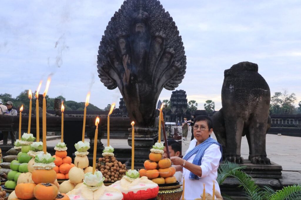 ក្រៅពីពិធីបួងសួងដែលនិមន្តព្រះសង្ឃស្វាធ្យាយជយន្តោ និងបង្សុកូលឧទ្ទិស ចំពោះវិញ្ញាណក្ខន្ធបុព្វបុរស វីរជននៃកងកម្លាំងប្រដាប់អាវុធគ្រប់ប្រភេទ លោកជំទាវបណ្ឌិតសភាចារ្យ ភឿង សកុណា ក៏បានអញ្ជើញទៅអុជធូបបួងសួង នៅតាមទីសក្តិសិទ្ធិជាច្រើនកន្លែង ក្នុងបរិវេណប្រាសាទអង្គរវត្ត៕