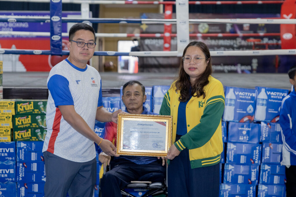 ភ្នំពេញ៖ បន្ទាប់ពីមានការអំពាវនាវពីសហព័ន្ធកីឡាប្រដាល់សកលកម្ពុជាកៀគរស្វែងរកមូលនិធិជួយដល់វីរៈកងទ័ពនិងពលរដ្ឋជាជនភៀសសឹករង់គ្រោះដោយការឈ្លានពានពីសំណាក់យោធាថៃ ក្រុមហ៊ុនវឌ្ឍនៈបាននាំយកនូវភេសជ្ជៈមួយចំនួនអមជាមួយនឹងការពិចារណាជួយថវិកាបន្ថែមជូនដល់សហព័ន្ធកីឡាប្រដាល់សកលកម្ពុជា នៅសាលហ្វឹកហាត់កីឡាប្រដាល់សកកម្ពុជាក្នុងពហុកីឡដ្ឋានជាតិ នាល្ងាចថ្ងៃទី១៦ ខែ ធ្នូ ឆ្នាំ២០២៥។