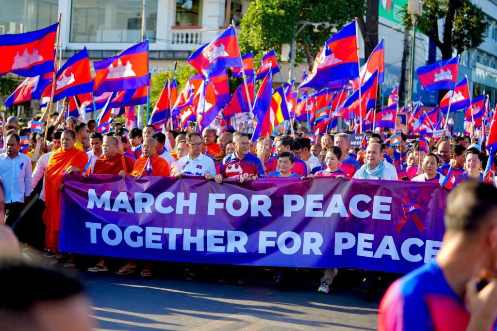 ភ្នំពេញ៖ ព្យុហយាត្រា «ដើរដើម្បីសន្តិភាព» របស់មហាគ្រួសារខ្មែរ បានចាប់ផ្ដើមចេញដំណើរពីបរិវេណផ្សាររាត្រីមាត់ទន្លេ ឆ្ពោះទៅកាន់សួនច្បារវិមានឯករាជ្យ ក្នុងបរិយាកាសពោរពេញដោយក្ដីសង្ឃឹម ក្ដីជឿជាក់ និងស្មារតីសាមគ្គីភាពជាតិ ។ ព្រះសង្ឃ និងមហាជនមកពីគ្រប់ទិសទី រាប់ម៉ឺនអង្គ/នាក់ បានចូលរួមក្នុងព្រឹត្តិការណ៍ ដើរដើម្បីសន្តិភាព (March for Peace) ដើម្បីបង្ហាញស្មារតីគាំទ្រសន្តិភាព នារសៀលថ្ងៃទី១៨ធ្នូ ឆ្នាំ២០២៥ ។