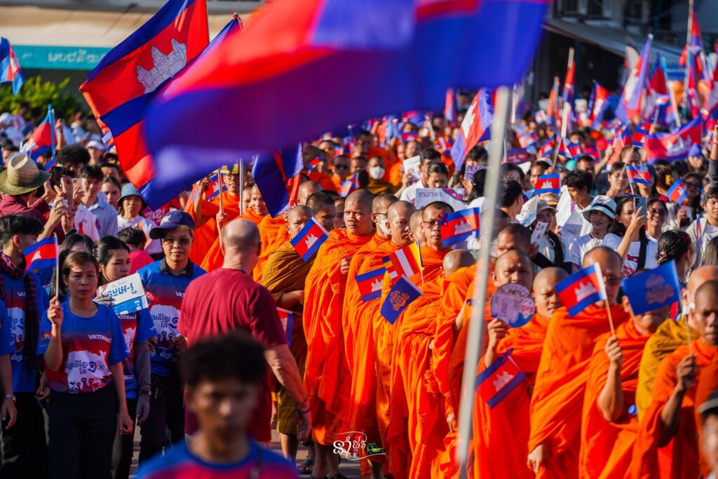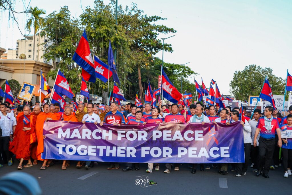 សម្តេចធិបតីបន្តថា មហាកម្លាំងសាមគ្គីនៃប្រជាជាតិខ្មែរមកពីគ្រប់មជ្ឈដ្ឋាន គ្រប់និន្នាការនយោបាយ និងសាសនា បានមកជួបជុំគ្នាក្រោមស្មារតីខ្មែរតែមួយ ដើម្បីធ្វើព្យុហយាត្រា «ដើរដើម្បីសន្តិភាព» របស់មហាគ្រួសារខ្មែរ បានចាប់ផ្ដើមចេញដំណើរពីបរិវេណផ្សាររាត្រីមាត់ទន្លេ ឆ្ពោះទៅកាន់សួនច្បារវិមានឯករាជ្យ ក្នុងបរិយាកាសពោរពេញដោយក្ដីសង្ឃឹម ក្ដីជឿជាក់ និងស្មារតីសាមគ្គីភាពជាតិ។