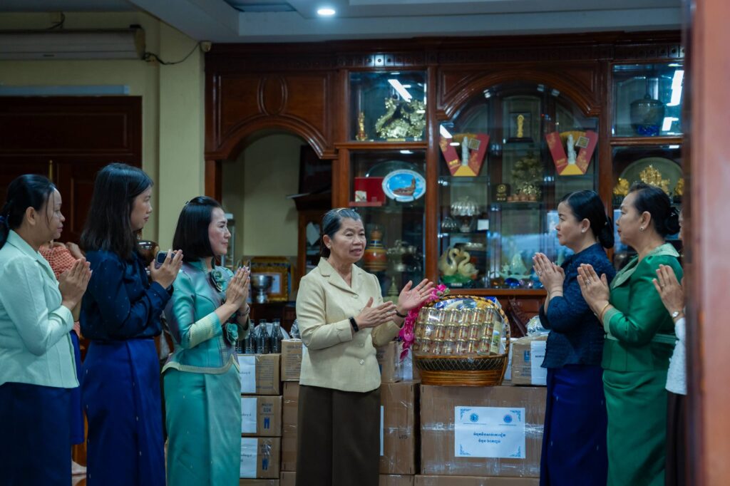 ភ្នំពេញ: លោកជំទាវ ប្រាក់ ច័ន្ទណយ រដ្ឋលេខាធិការ និងជាប្រធានកិត្តិយសសាខាសមាគមនារីកម្ពុជាដើម្បីសន្តិភាព និងអភិវឌ្ឍន៍ ក្រសួងប្រៃសណីយ៍និងទូរគមនាគមន៍ និងសហការី នៅថ្ងៃទី១៨ ខែធ្នូ ឆ្នាំ២០២៥ បាននាំយកនូវគ្រឿងឧបភោគបរិភោគ សម្ភារៈ និងថវិកា គោរពជូនតាមរយ: សម្ដេចកិត្តិសង្គហបណ្ឌិត ម៉ែន សំអន ឧត្តមប្រឹក្សាផ្ទាល់ព្រះមហាក្សត្រ និងជាប្រធានសមាគមនារីកម្ពុជាដើម្បីសន្តិភាព និងអភិវឌ្ឍន៍ ដែលរួមមាន អំបុកជាមួយសាច់គោងៀតចំនួន ៥០០កញ្ចប់ គ្រាប់ជីស្ងួតចំនួន ៥៦០ដប វ៉ែនតាការពារផ្សែងពុលចំនួន២០០ ម៉ាសការពារផ្សែងពុលចំនួន ២០០ និងថវិកាចំនួន ១០ លានរៀល ដើម្បីគាំទ្រដល់កងទ័ពជូរមុខ និងជនភៀសសឹកដែលកំពុងជួបការលំបាក ព្រមទាំងសូមគោរពដឹងគុណជូនដល់វីរៈកងទ័ពជួរមុខ និងថ្នាក់ដឹកនាំកំពូលដែលខិតខំប្រឹងប្រែងក្នុងការការពារប្រជាជន និងបូរណភាពទឹកដីជាតិយើង។