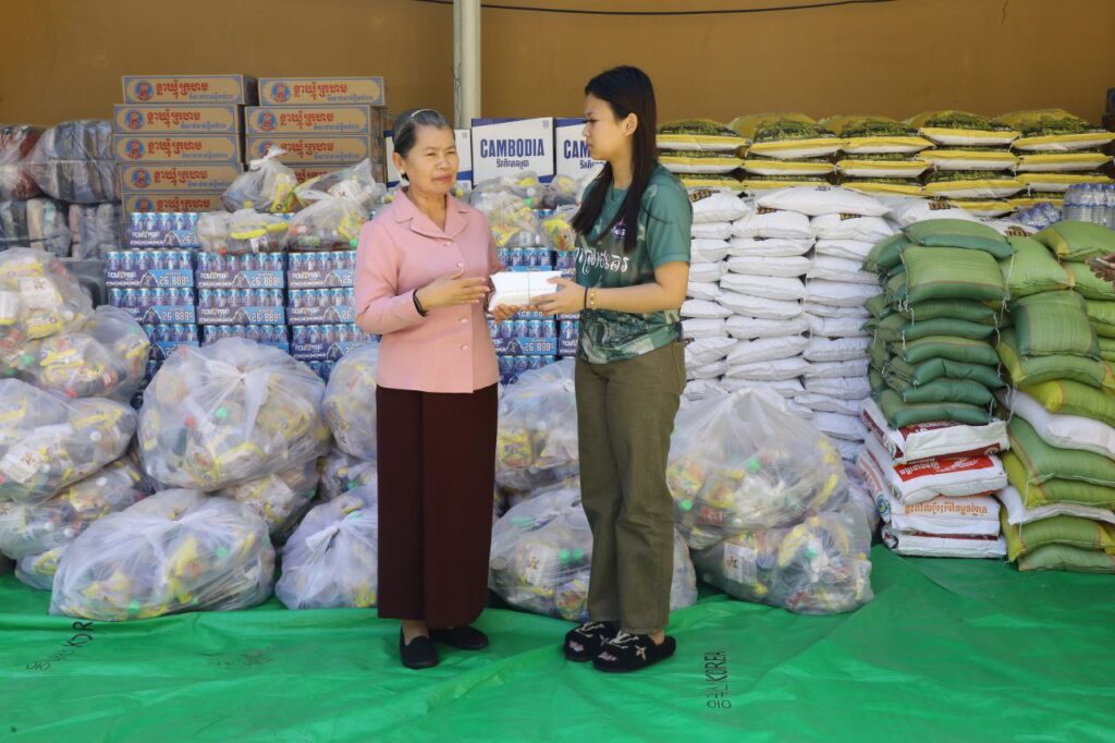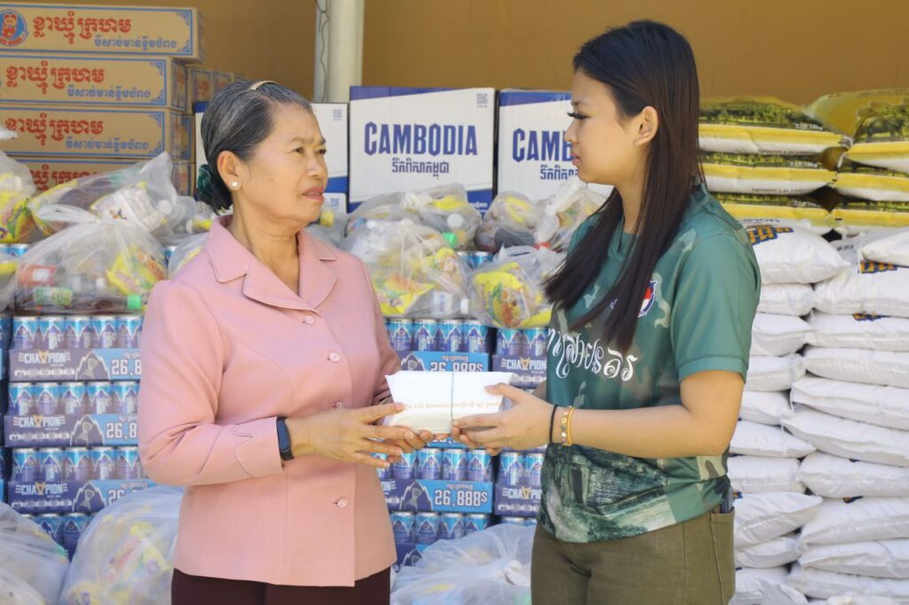 ភ្នំពេញ៖ សម្តេចកិត្តិសង្គហបណ្ឌិត ម៉ែន សំអន ប្រធានគណៈកម្មាធិការកណ្តាលសមាគមនារីកម្ពុជា ដើម្បីសន្តិភាព និងអភិវឌ្ឍន៍ ថ្លែងអំណរគុណ អ្នកឧកញ៉ា យី រដ្ឋា អគ្គនាយិកាក្រុមហ៊ុន YRT Group និង ឯកឧត្តម ប៊ុន តារា ដែលបានចាត់ឲ្យកូនស្រី កញ្ញា ស៊ុយ ស្រីណុច បាននាំយកស្បៀង ដើម្បីចូលរួមចំណែកដល់សមរភូមិជួរមុខ នារសៀល ថ្ងៃអាទិត្យ ២កើត ខែបុស្ស ឆ្នាំម្សាញ់ សប្តស័ក ព.ស.២៥៦៩ ត្រូវនឹង ថ្ងៃទី២១ ខែធ្នូ ឆ្នាំ២០២៥។