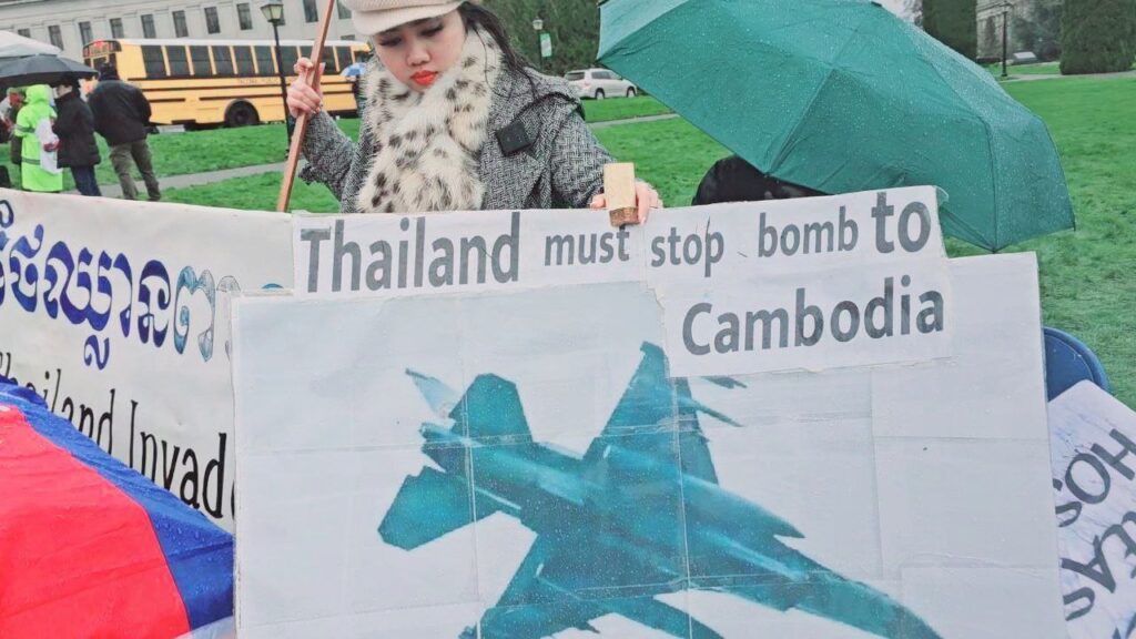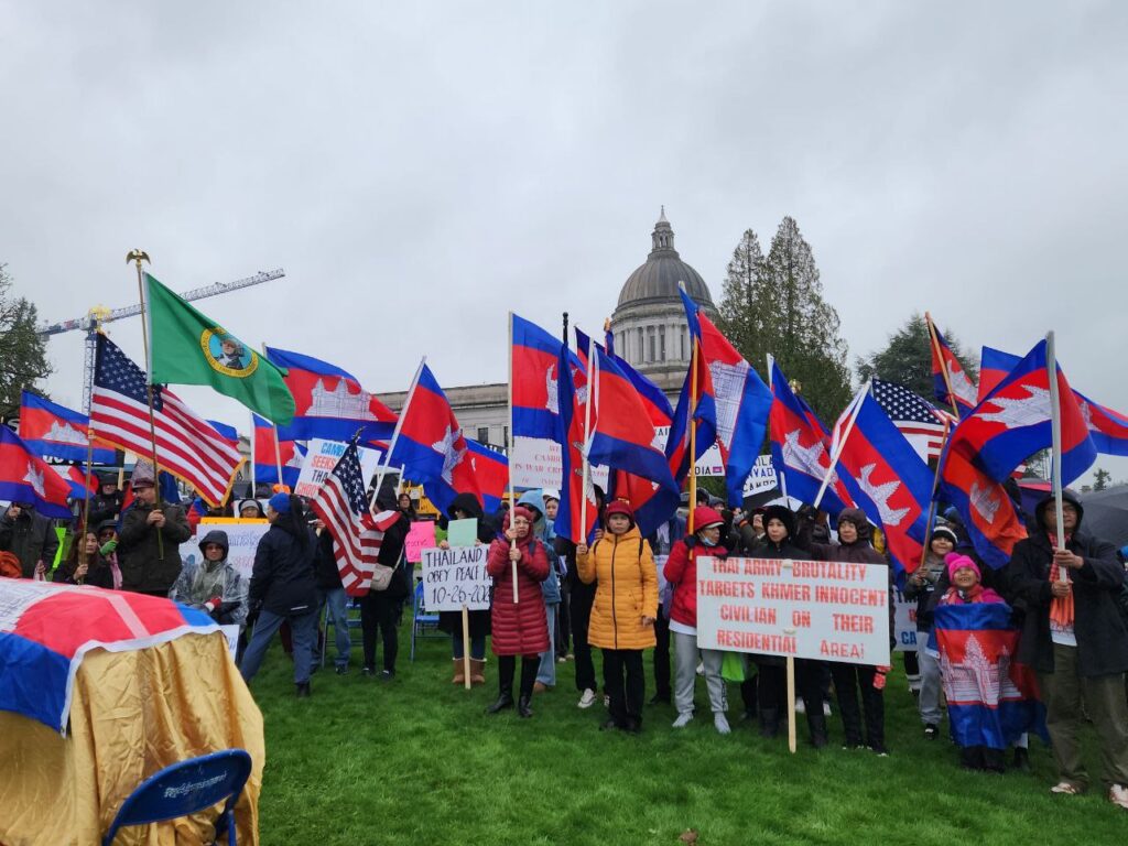ខ្មែរនៅសហរដ្ឋអាមេរិក រដ្ឋវ៉ាស៊ីនតោន បាននាំគ្នា សម្តែងមតិប្រឆាំងនឹងការឈ្លានពានរបស់ថៃ មកលើកម្ពុជា