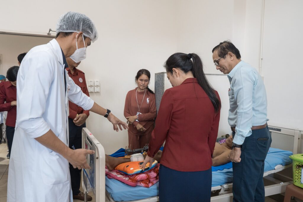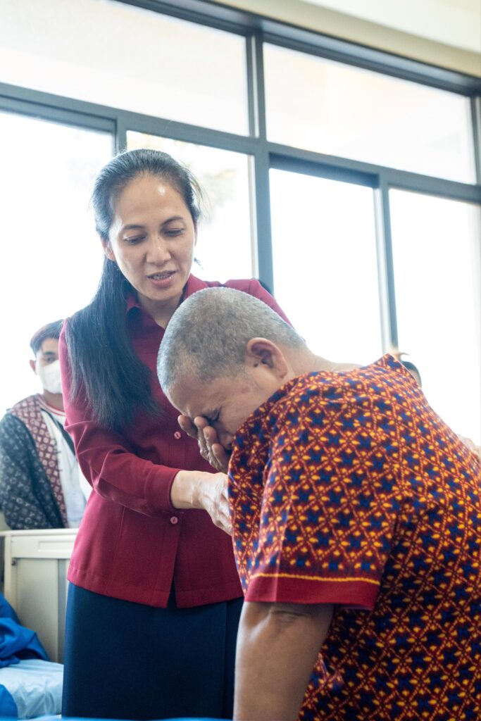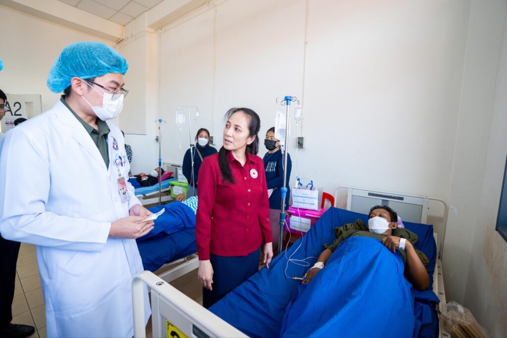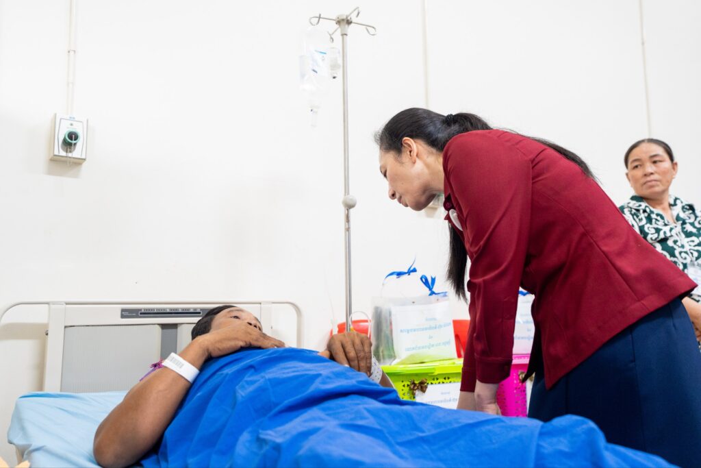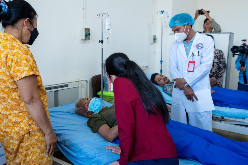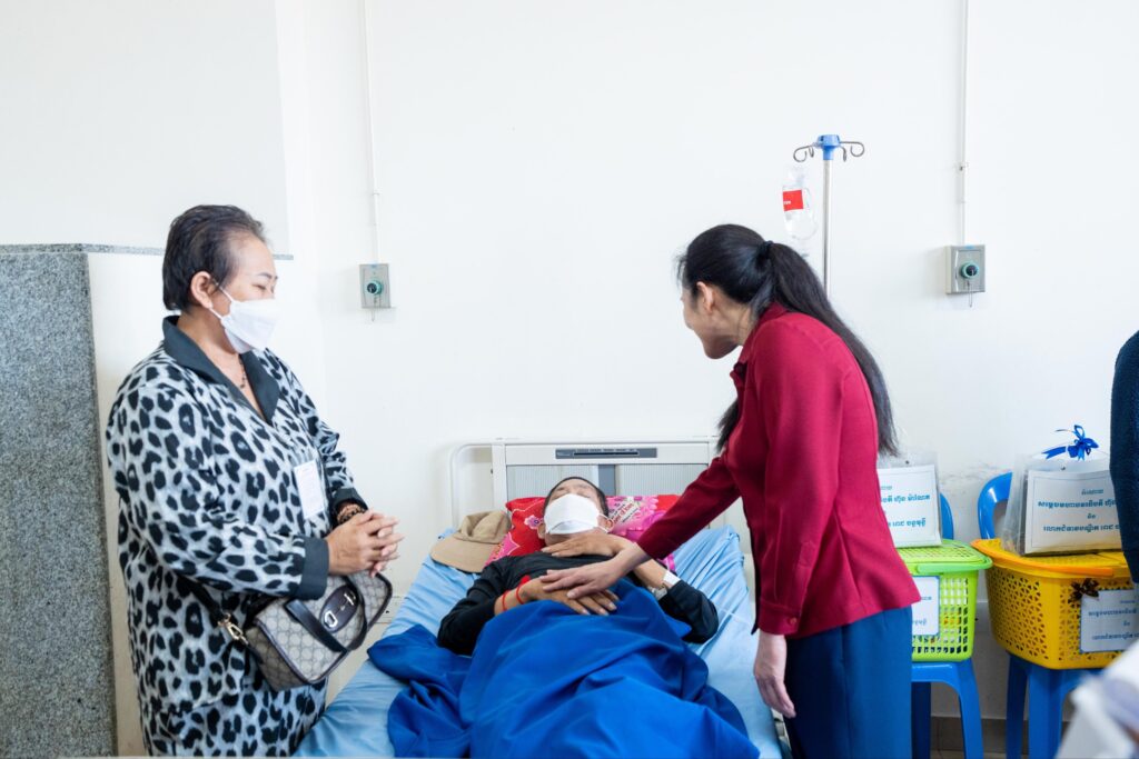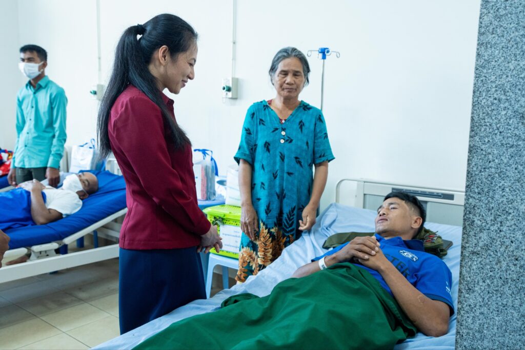 លោកជំទាវបណ្ឌិត ពេជ ចន្ទមុន្នី ហ៊ុនម៉ាណែត អញ្ជើញសួរសុខទុក្ខវីរយុទ្ធជន ដែលរងរបួសក្នុងសមរភូមិ រួមទាំងប្រជាជនរងគ្រោះក្នុងសង្គ្រាម កំពុងសម្រាកព្យាបាលនៅមន្ទីរពេទ្យបង្អែកខេត្តសៀមរាប