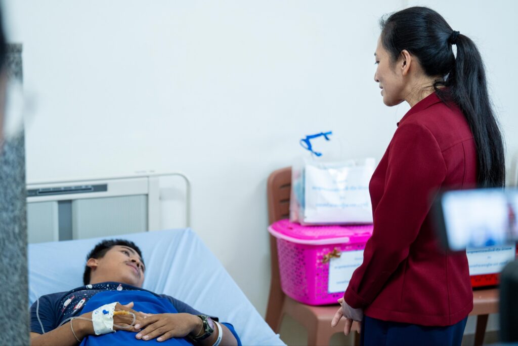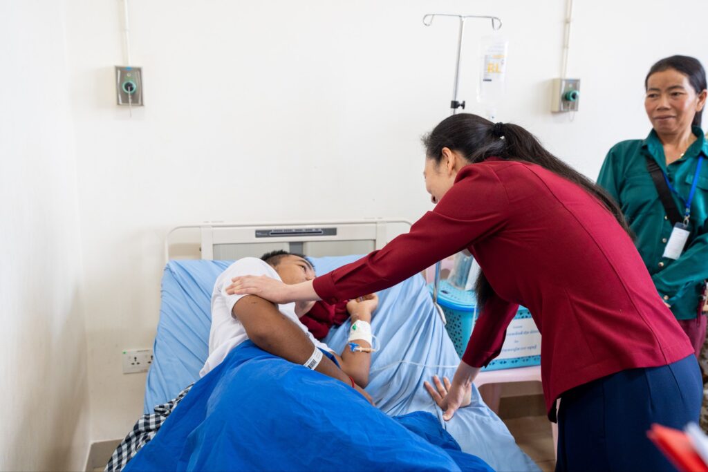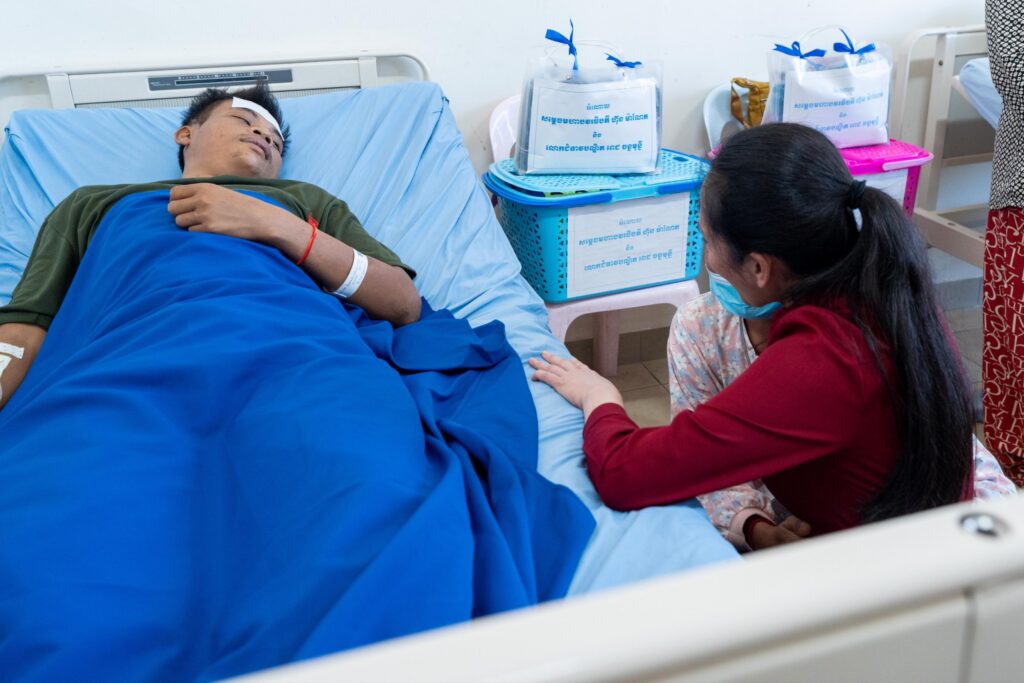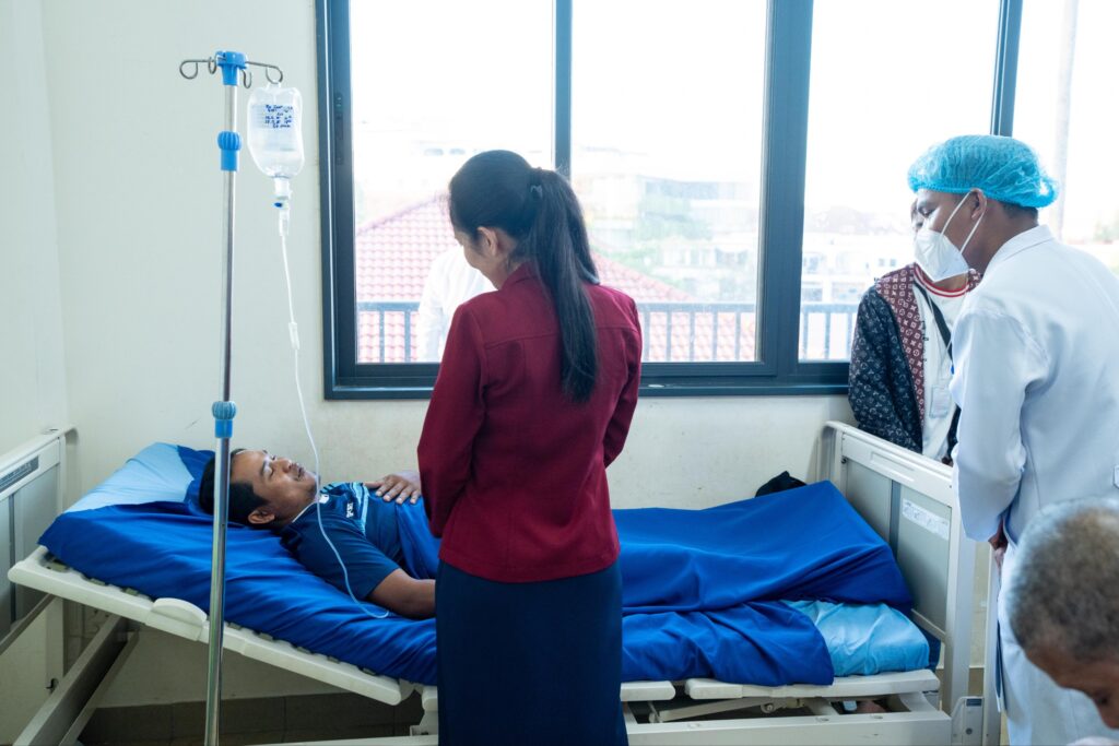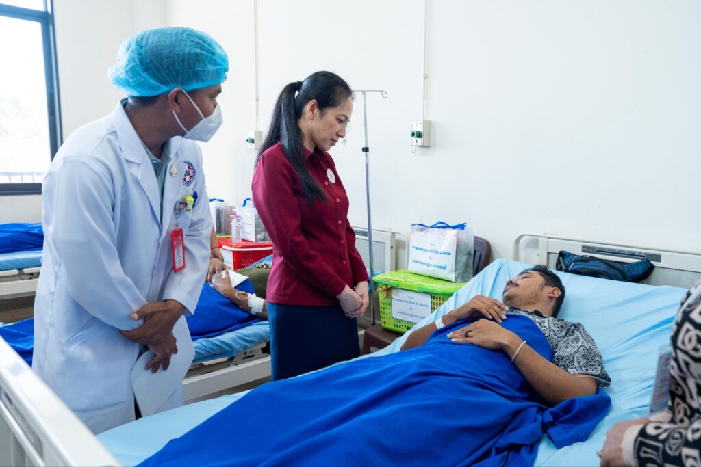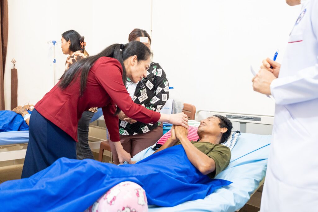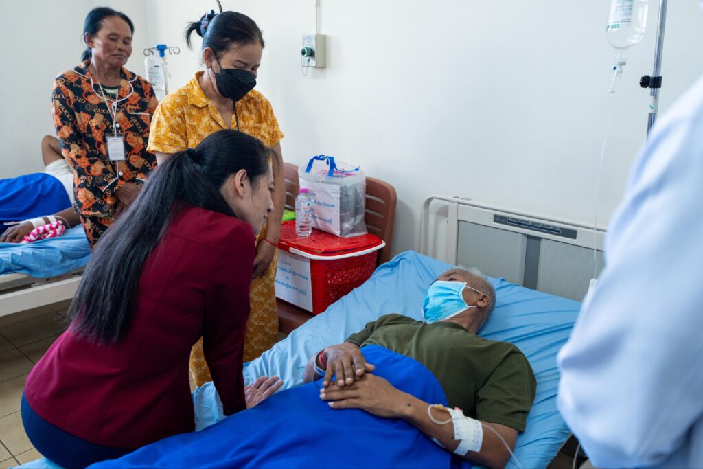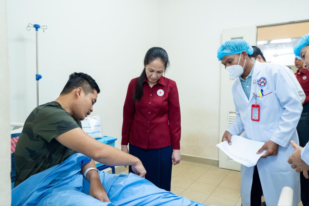លោកជំទាវបណ្ឌិត ពេជ ចន្ទមុន្នី ហ៊ុនម៉ាណែត អញ្ជើញសួរសុខទុក្ខវីរយុទ្ធជន ដែលរងរបួសក្នុងសមរភូមិ រួមទាំងប្រជាជនរងគ្រោះក្នុងសង្គ្រាម កំពុងសម្រាកព្យាបាលនៅមន្ទីរពេទ្យបង្អែកខេត្តសៀមរាប