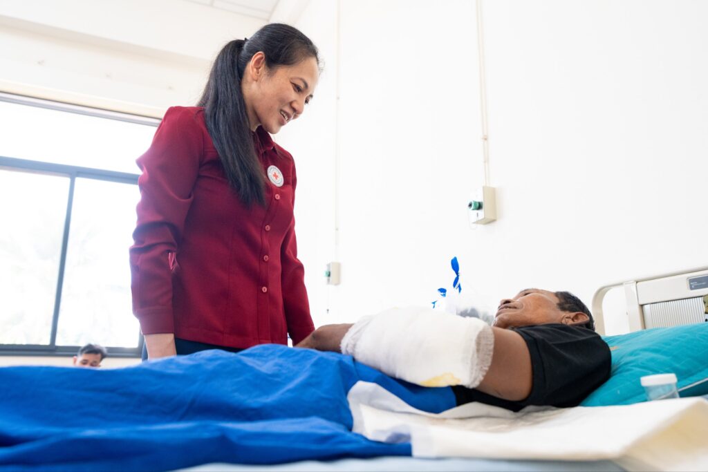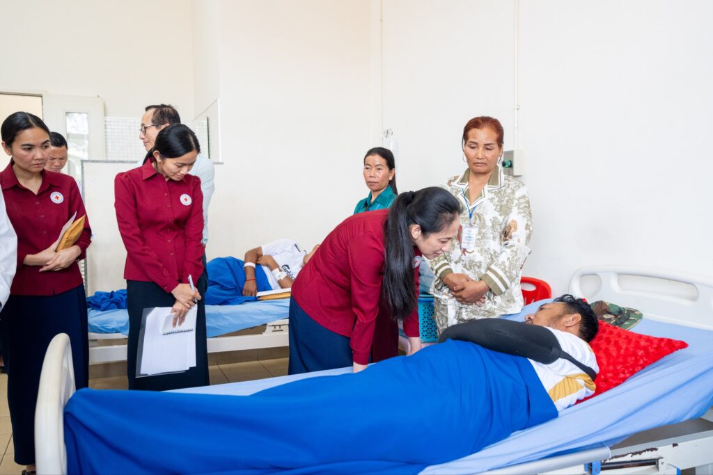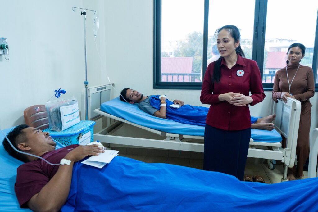ខេត្តសៀមរាប៖ លោកជំទាវបណ្ឌិត ពេជ ចន្ទមុន្នី ហ៊ុនម៉ាណែត អនុប្រធានអចិន្ត្រៃយ៍កាកបាទក្រហមកម្ពុជា និងជាតំណាងដ៏ខ្ពង់ខ្ពស់របស់ សម្តេចកិត្តិព្រឹទ្ធបណ្ឌិត ប៊ុន រ៉ានី ហ៊ុនសែន ប្រធានកាកបាទក្រហមកម្ពុជា បានអញ្ជើញចុះសួរសុខទុក្ខវីរយុទ្ធជនការពារបូរណភាពទឹកដីដ៏អង់អាចក្លាហាន ដែលរងរបួសក្នុងសមរភូមិ រួមទាំងប្រជាជនរងគ្រោះក្នុងសង្គ្រាម កំពុងសម្រាកព្យាបាលនៅតាមមន្ទីរពេទ្យបង្អែកខេត្តសៀមរាប នៅថ្ងៃទី២៨ ខែធ្នូ ឆ្នាំ២០២៥។