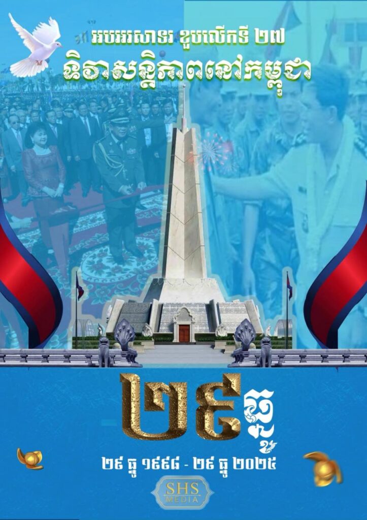 ភ្នំពេញ៖ដើម្បីអបអរទិវាសន្តិភាពនៅកម្ពុជាខួបលើកទី២ និងខួបលើកទី២៧ នៃទិវាបញ្ចប់សង្រ្គាមស៊ីវិលនៅកម្ពុជា តាមរយៈនយោបាយ ឈ្នះ ឈ្នះ ២៩ ធ្នូ ១៩៩៨ – ២៩ ធ្នូ២០២៥ក្រុមគ្រួសារសហភាពសហព័ន្ធយុវជនកម្ពុជា(ស.ស.យ.ក.) នឹងប្រារព្ធពិធីបួងសួងសុំសេចក្ដីសុខសន្ដិភាព នៅវិមានឈ្នះ ឈ្នះ រាជធានីភ្នំពេញនារសៀលថ្ងៃទី២៩ ខែធ្នូ ឆ្នាំ២០២៥