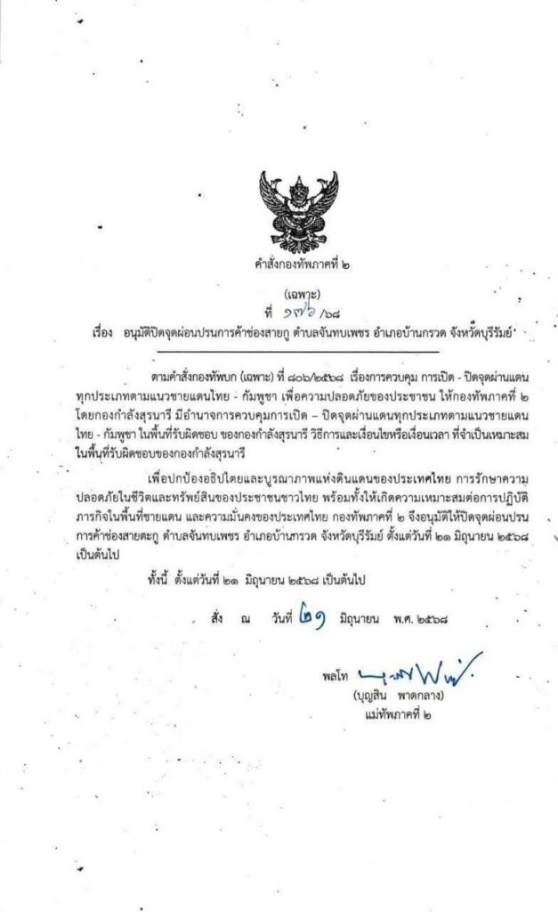 សម្តេចធិបតី៖ កាលពីយប់ថ្ងៃទី២១ មិថុនា យោធភូមិភាគ២ នៃកងទ័ពថៃទើបបានចេញលិខិតជូនដំណឹងថាភាគីថៃនឹងបិទច្រកសាយតាគូ-ជប់គគីរ