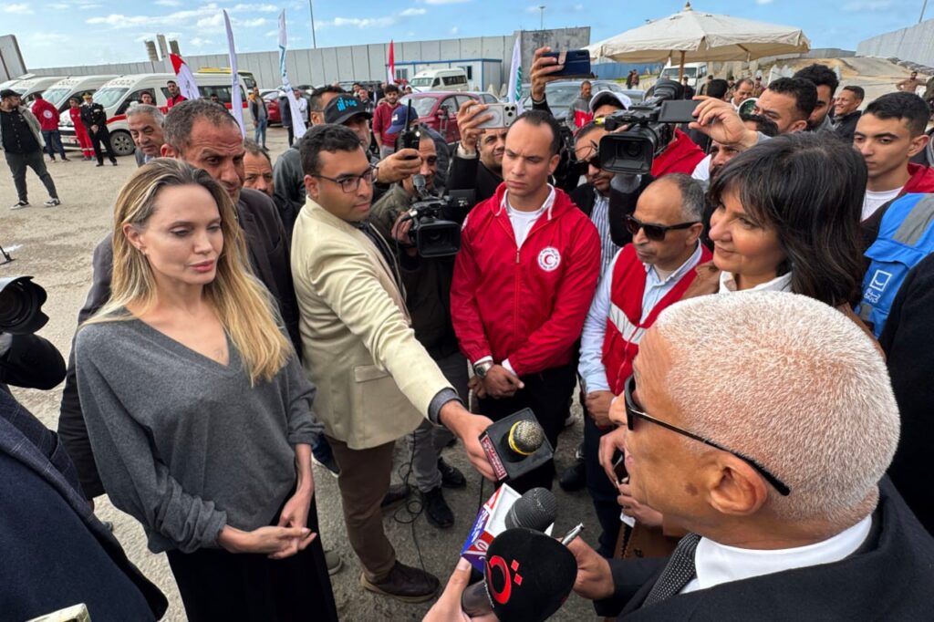 ហ្គាហ្សា ៖ តារាភាពយន្តហូលីវូដ Angelina Jolie បានទៅកាន់ច្រកឆ្លងកាត់ព្រំដែន Rafah នៅខាងប្រទេសអេហ្ស៊ីប នាថ្ងៃសុក្រ ដែលជាផ្នែកមួយនៃដំណើរទស្សនកិច្ចមនុស្សធម៌ និងលើកទឹកចិត្តដល់ជនភៀសខ្លួនហ្គាហ្សា ។