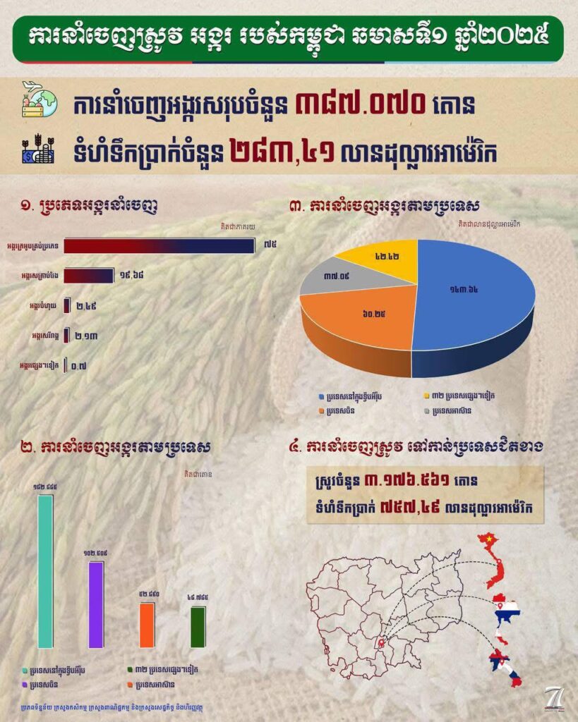 កម្ពុជា នៅក្នុងឆមាសទី១ ឆ្នាំ២០២៥ នាំចេញអង្ករជាង ៣៨៧ពាន់តោន