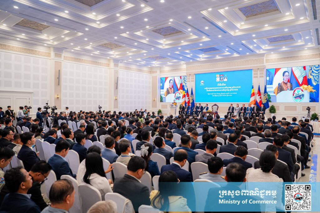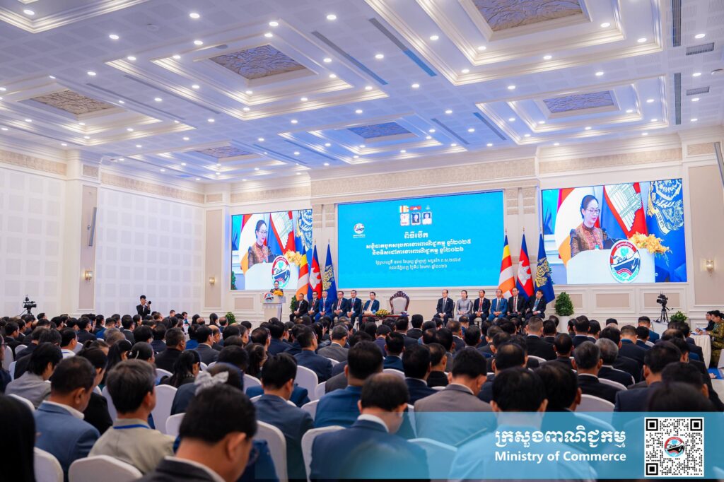 ភ្នំពេញ៖ឆ្នាំ២០២៥កន្លងទៅទំហំពាណិជ្ជកម្មកម្ពុជាសម្រេចបាន៦៥,២០ ពាន់លានដុល្លារអាម៉េរិក គឺកើនឡើងក្នុងរង្វង់១៨ភាគរយ ក្នុ្ងងនោះការនាំចេញក៏មានកំណើន១៧ភាគរយ ។ក្រសួងក៏កំពុងអនុវត្តតាមចក្ខុវិស័យពង្រឹងទីផ្សារចាស់ ពង្រីកទីផ្សារថ្មីផងដែរ។នេះជាការបញ្ជាក់របស់ លោកជំទាវ ចម និម្មល រដ្ឋមន្រ្តីក្រសួងពាណិជ្ជកម្ម។