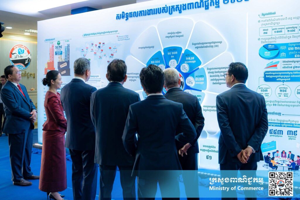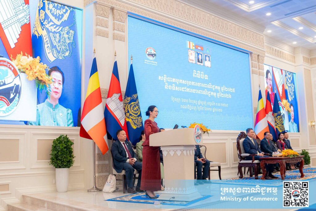 ចំណែកលោកជំទាវ ចម និម្មល រដ្ឋមន្រ្តីក្រសួងពាណិជ្ជកម្មបានរំលេចពីស្ថានភាពពាណិជ្ជកម្មថា ស្ថានភាពពាណិជ្ជកម្មអន្តរជាតិក្នុងឆ្នាំ២០២៥សម្រេចបានចំនួន ៦២,២៤ពាន់លានដុល្លារអាម៉េរិក កើនឡើងក្នុងរង្វង់១៨ភាគរយ បើធៀបនិងឆ្នាំ២០២៤ ក្នុងនោះការនាំចេញសម្រេចបានទឹកប្រាក់ ៣១.២៨ពាន់លានដុល្លារកើនឡើង១៧ភាគរយ ។ទីផ្សារនាំចេញសំខាន់ៗរបស់កម្ពុជា រួមមាន អាមេរិក៤១ភាគរយ អាស៊ាន១៨ភាគរយ សហភាពអឺរ៉ុប ១៦ ភាគរយ។ចំណែកការនាំចេញ និងការនាំចូលបានឈានប្រហាក់ប្រហែលគ្នា ដែលកំណើននៃការនាំចេញនេះបង្ហាញពីប្រសិទ្ធភាពនៃកិច្ចចរចារសហប្រតិបត្តិការជាមួយដៃគូសំខាន់ៗ។
