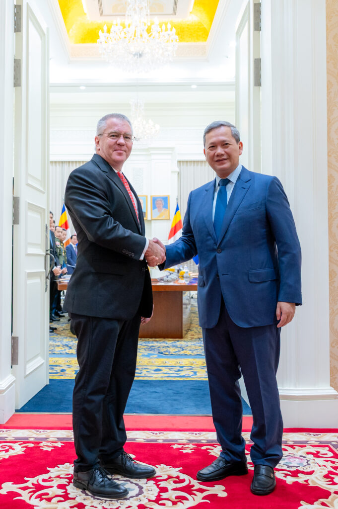 ក្នុងជំនួបជាមួយសម្តេចមហាបវរធិបតី ហ៊ុន ម៉ាណែត នាយករដ្ឋមន្ត្រីនៃព្រះរាជាណាចក្រកម្ពុជា នៅវិមានសន្តិភាព នាព្រឹកថ្ងៃទី១០ ខែមករា ឆ្នាំ២០២៦ ឯកឧត្តម Michael George DeSombre ឧបការីរដ្ឋមន្ត្រីការបរទេសសហរដ្ឋអាម៉េរិក ទទួលបន្ទុកតំបន់អាស៊ីបូព៌ា និងប៉ាស៊ីហ្វីក បានជម្រាបជូនសម្តេចបវរធិបតីថា រដ្ឋាភិបាលសហរដ្ឋអាម៉េរិក ជាពិសេស ឯកឧត្តមប្រធានាធិបតី Donald Trump បន្តយកចិត្តទុកដាក់ចំពោះស្ថានការណ៍ព្រំដែនកម្ពុជា-ថៃ និងការអនុវត្តតាមស្មារតីនៃសេចក្តីថ្លែងការណ៍រួមទីក្រុងគូឡាឡាំពួរ ចុះថ្ងៃទី២៦ ខែតុលា ឆ្នាំ២០២៥ ហើយឯកឧត្តមក៏បានសម្តែងសេចក្តីរីករាយចំពោះយោធិនកម្ពុជា ១៨ រូប ដែលត្រូវបានដោះលែងមកជួបជុំគ្រួសារវិញ។
