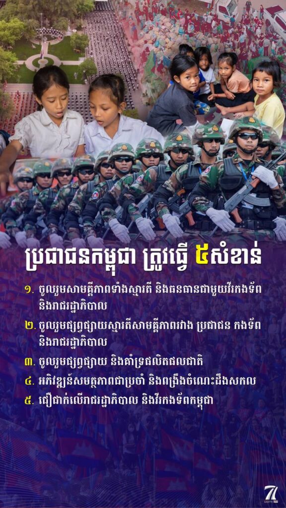 ប្រជាជនកម្ពុជា ត្រូវធ្វើ ៥សំខាន់One-Minuteអត្ថបទដោយ៖ឆាយ រត្ថា 📷 Gazetteប្រជាជន #ams1minute ឆាយ រត្ថាលោក ឆាយ រត្ថា ជាបុគ្គលិកផ្នែកព័ត៌មានវិទ្យា នៃអគ្គនាយកដ្ឋានវិទ្យុ និងទូរទស្សន៍ អប្សរាអត្ថបទមុនអត្ថបទបន្ទាប់