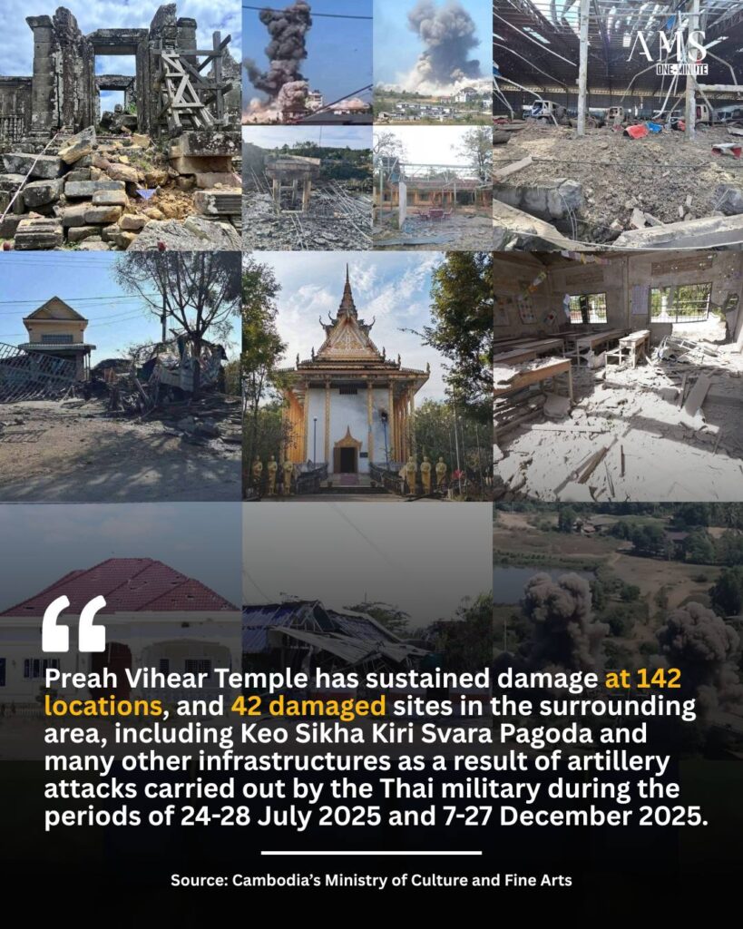 ប្រាសាទព្រះវិហាររងការបំភ្លិចបំផ្លាញចំនួន ១៤២ទីតាំង និងតំបន់ជុំវិញចំនួន ៤២កន្លែង