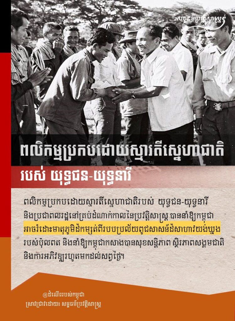 ពលិកម្មប្រកបដោយស្មារតីស្នេហាជាតិរបស់យុទ្ធជន-យុទ្ធនារីនិងប្រជាពលរដ្ឋនៅគ្រប់ដំណាក់កាល នៃប្រវត្តិសាស្ត្រ បាននាំឱ្យកម្ពុជាអាចរំដោះមាតុភូមិដ៏កម្សត់ពីរបបប្រល័យពូជសាសន៍ដ៏សាហាវយង់ឃ្នងរបស់ប៉ុលពត និងនាំឱ្យកម្ពុជាកសាងបានសុខសន្តិភាព ស្ថិរភាពសង្គមជាតិ និងការអភិវឌ្ឍរហូតមកដល់សព្វថ្ងៃ។