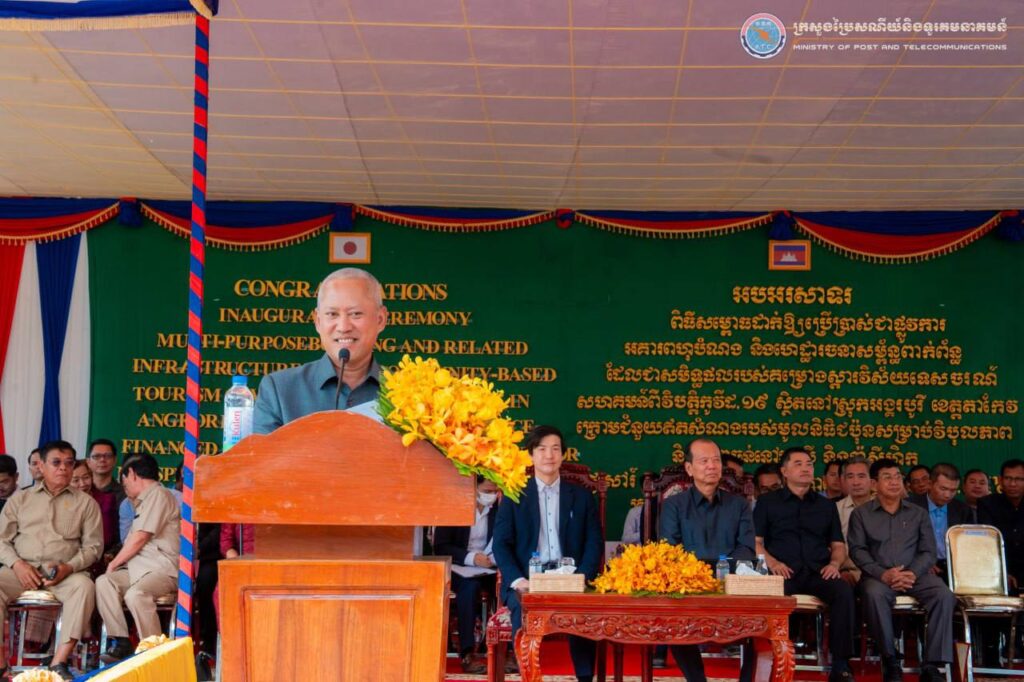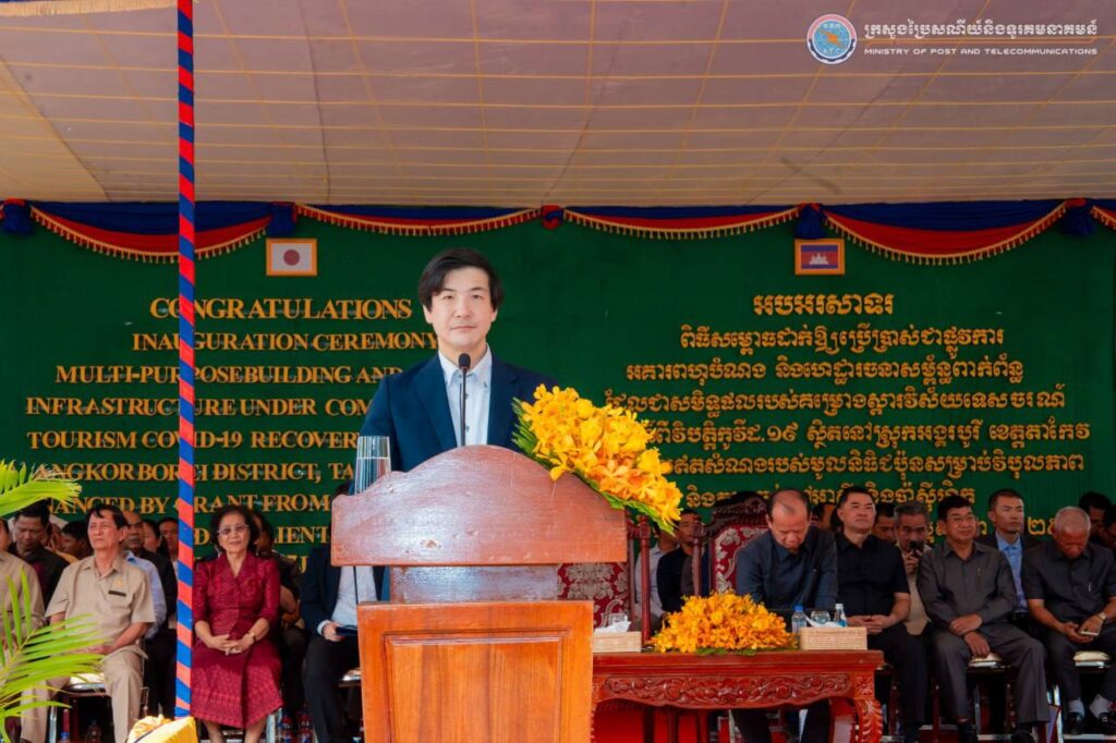 ខេត្តតាកែវ ៖ ព្រឹកថ្ងៃទី១៧ ខែមករា ឆ្នាំ២០២៦ ឯកឧត្តម ជា វ៉ាន់ដេត រដ្ឋមន្រ្តីក្រសួងប្រៃសណីយ៍និងទូរគមនាគមន៍ (ក.ប.ទ.) និងជាប្រធានក្រុមការងាររាជរដ្ឋាភិបាលចុះមូលដ្ឋានខេត្តតាកែវ និងលោក NAGASE Kensuke (ណាហ្គាសិ កេនស៊ូកិ) អនុប្រធានបេសកកម្មនៃស្ថានទូតជប៉ុនប្រចាំកម្ពុជា បានអញ្ជើញជាអធិបតីដ៏ខ្ពង់ខ្ពស់ក្នុងពិធីសម្ពោធដាក់ឱ្យប្រើប្រាស់ជាផ្លូវការ “អគារពហុបំណងនិងហេដ្ឋារចនាសម្ព័ន្ធពាក់ព័ន្ធ” ដែលជាសមិទ្ធផលរបស់គម្រោងស្តារវិស័យទេសចរណ៍សហគមន៍ពីវិបត្តិកូវីដ-១៩ នៅសាលាស្រុកអង្គរបូរី ខេត្តតាកែវ ដោយមានការនិមន្ត/ចូលរួមពី ព្រះសង្ឃ សមាជិក សមាជិកា ព្រឹទ្ធសភា រដ្ឋសភា ឯកឧត្តម ក្រុមការងារក្រុង ស្រុក ភាគីពាក់ព័ន្ធ ប្រជាពលរដ្ឋក្នុងមូលដ្ឋាន លោកគ្រូ អ្នកគ្រូ និងសិស្សានុសិស្សប្រមាណ ១៤៥០ អង្គ/នាក់។
