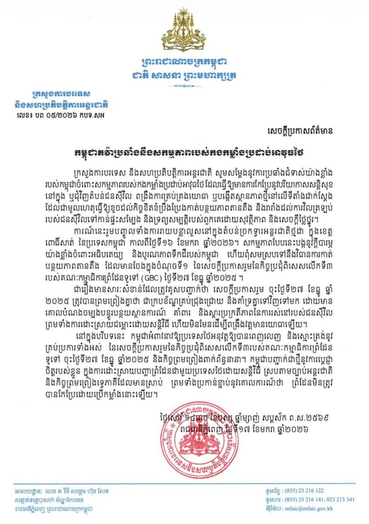 កម្ពុជាតវ៉ាប្រឆាំងនឹងសកម្មភាពរបស់កងកម្លាំងប្រដាប់អាវុធថៃOne-Minuteអត្ថបទដោយ៖ឆាយ រត្ថា Cambodia Protests against Thai Armed Forces’ Actions #ams1minute ឆាយ រត្ថាលោក ឆាយ រត្ថា ជាបុគ្គលិកផ្នែកព័ត៌មានវិទ្យា នៃអគ្គនាយកដ្ឋានវិទ្យុ និងទូរទស្សន៍ អប្សរាអត្ថបទមុនអត្ថបទបន្ទាប់