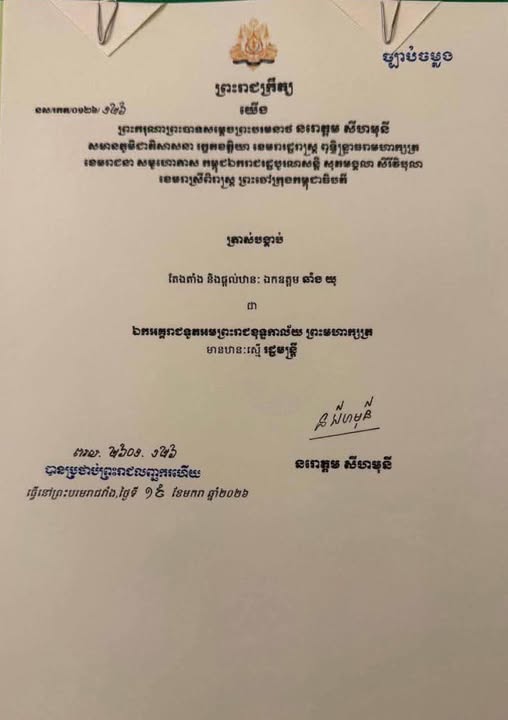 នេះបើយោងតាមព្រះរាជក្រឹត្យកាលពីថ្ងៃចន្ទទី១៩ ខែមករា ឆ្នាំ២០២៦។